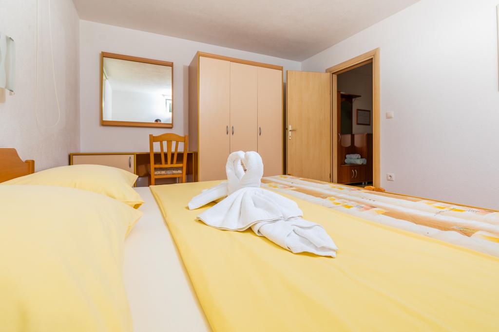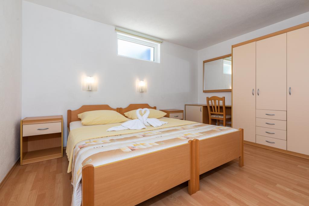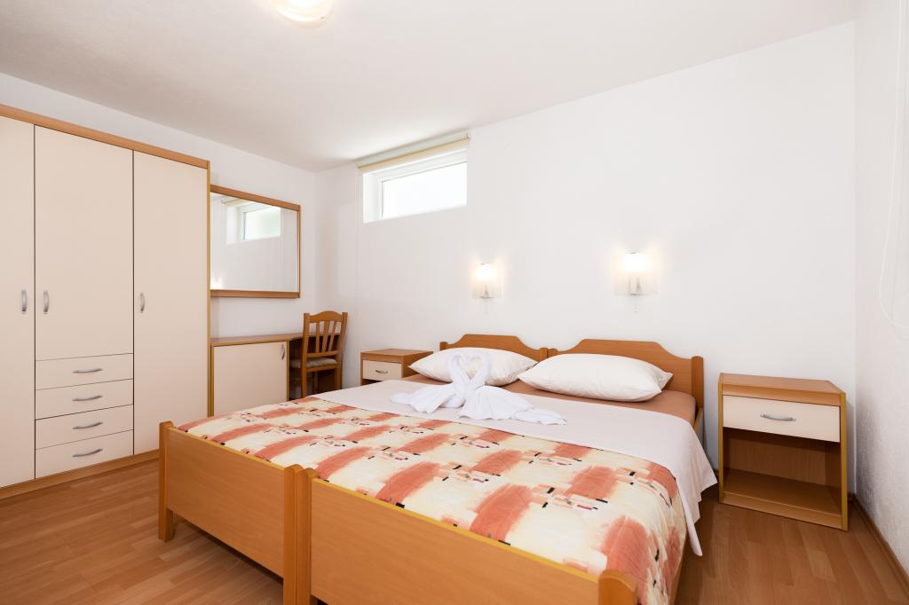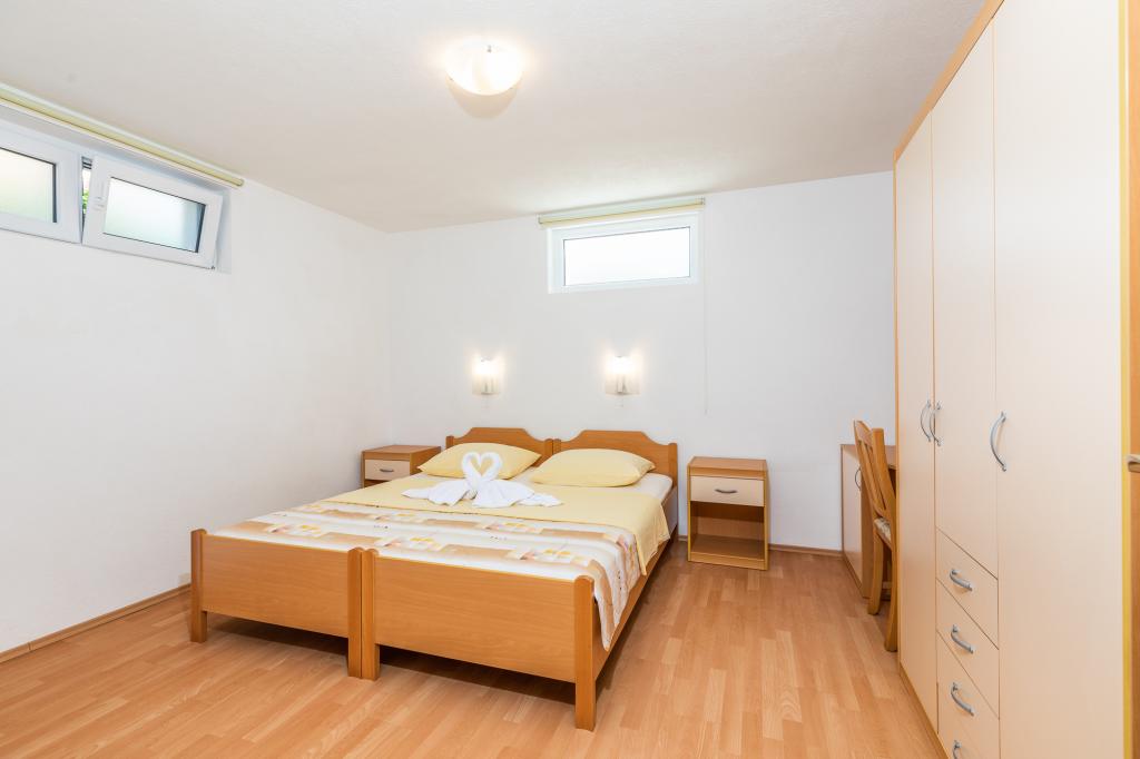 Unités d'hébergementPour effectuer une réservation, il est nécessaire de payer un acompte de 100 € par l'intermédiaire de la banque (IBAN), et le reste de la facture est payé en espèces à l'arrivée. L'arrivée à l'appartement est possible après 14h00 et le départ avant 10h00. Le prix de base de l'appartement est pour 2 personnes. Pour chaque personne supplémentaire sur un lit supplémentaire, le prix augmente de 12 €/jour (1er mai-14 juillet, 21 août-30 septembre) ou de 15 €/jour (15 juillet-20 août). Chaque appartement dispose d'un lit supplémentaire pour 2 personnes. Les enfants jusqu'à 3 ans séjournent gratuitement s'ils n'utilisent pas de lit d'appoint. Un séjour jusqu'à 3 nuits augmente le prix de la prestation de 30%. La taxe de séjour est incluse dans le prix.