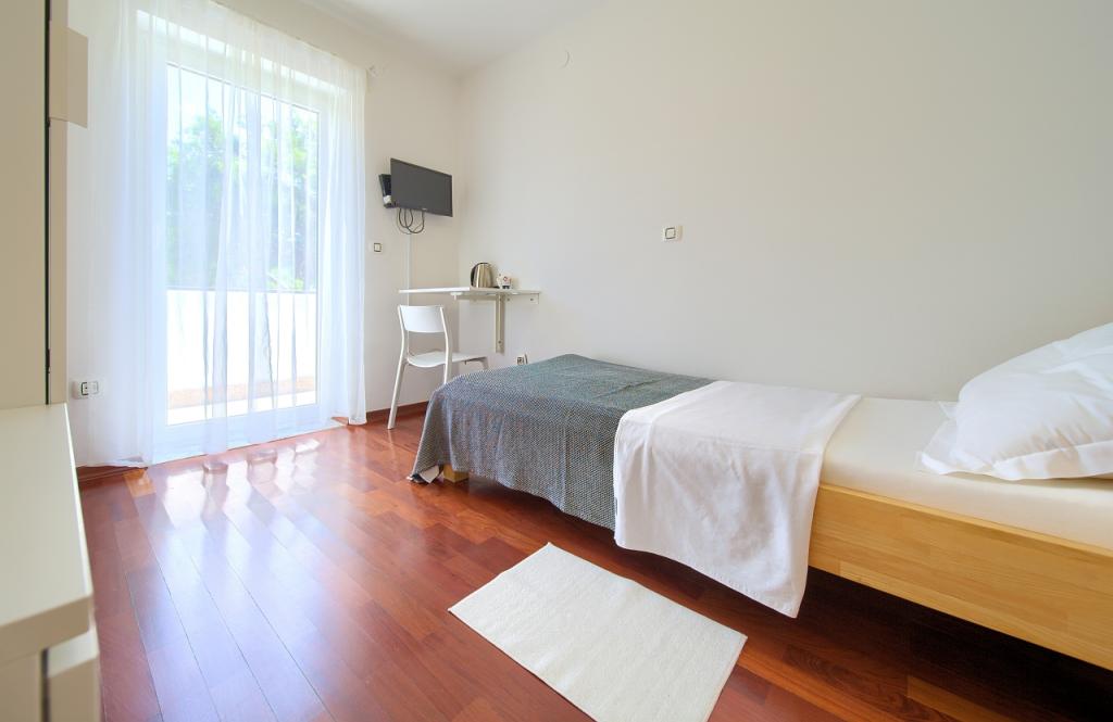 Entièrement rénové et chambres et des appartements dans le calme Punta nouvellement meublé. Atmosphère agréable et une atmosphère chaleureuse. Proche de la plage (10 min à pied) des magasins (5min à pied) et la ville (15 min à pied), la raison suffisante pour ne pas utiliser la voiture au congé annuel pour les besoins quotidiens. un grand jardin sont disponibles pour socialiser et se détendre. Grand parking. Service de petit déjeuner pour les chambres 5 E / jour Possibilité de petit-déjeuner pour les appartements. air conditionné inclus dans le prix, certains appartements ont accès aux enfants et aux chariots de indvalidska.