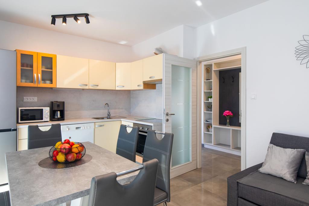 Nous n'avons jamais été accueillis aussi chaleureusement en Croatie. Mihaela et son mari accueillent leurs invités avec de délicieux fruits et légumes et leur propre huile d'olive. L'appartement est très spacieux et lumineux. Chaque chambre est climatisée. Très bon équipement de cuisine Mihaela a toujours une astuce pour toutes les questions sur Punat Superbe piscine propre et nettoyée quotidiennement. Nous reviendrons certainement.