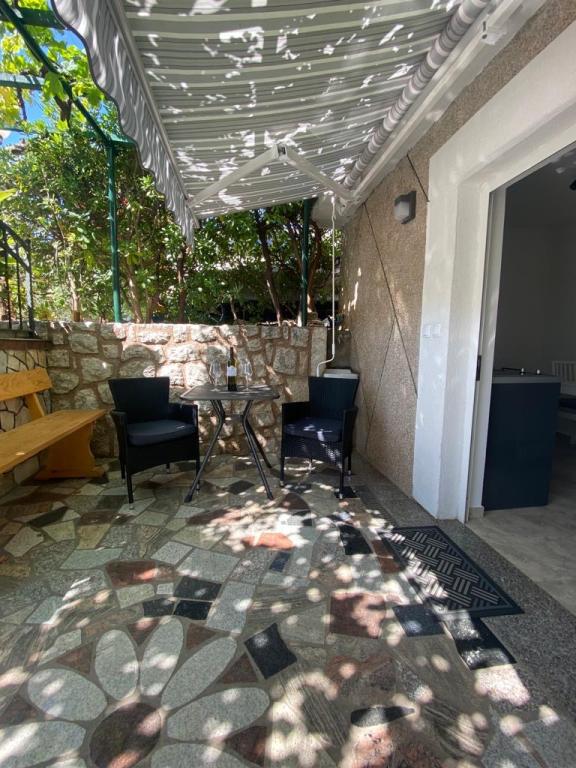 Le studio est entouré de verdure et constitue un véritable havre de paix : fleurs méditerranéennes, vignes, oliviers… J’ai été enchantée par les figues et les prunes que j’ai cueillies et dégustées. Dans le jardin attenant à la maison, on trouve également des tomates, des concombres et des courgettes, et tout est autorisé à être cueilli et consommé. Un jardin pour dix ! Le studio est parfait pour deux personnes et dispose de tout le nécessaire. Tout est très propre et bien rangé, probablement neuf. Le lit est très confortable et il fait bon dormir. La voiture peut être garée dans la cour. Les propriétaires sont extrêmement gentils ; ils m’ont invitée à dîner, préparé au barbecue au bord de la piscine. La piscine est réservée aux résidents du studio et du grand appartement et dispose d’un jacuzzi, où l’on peut se baigner à toute heure de la journée. Punat propose de superbes événements estivaux, ce qui lui confère une vie nocturne animée. J’ai adoré Beat on the Sea, et à une vingtaine de minutes se trouve le Diamond Club pour ceux qui recherchent des divertissements plus intenses. La plage est à quelques minutes à pied en contrebas de la maison, mais les propriétaires m'en ont montré une un peu plus loin, plus belle, plus calme et plus agréable, juste pour le plaisir. Dans l'ensemble, je suis ravi de ce logement : la verdure, le calme, la vie nocturne et les propriétaires adorables ! Je recommande !