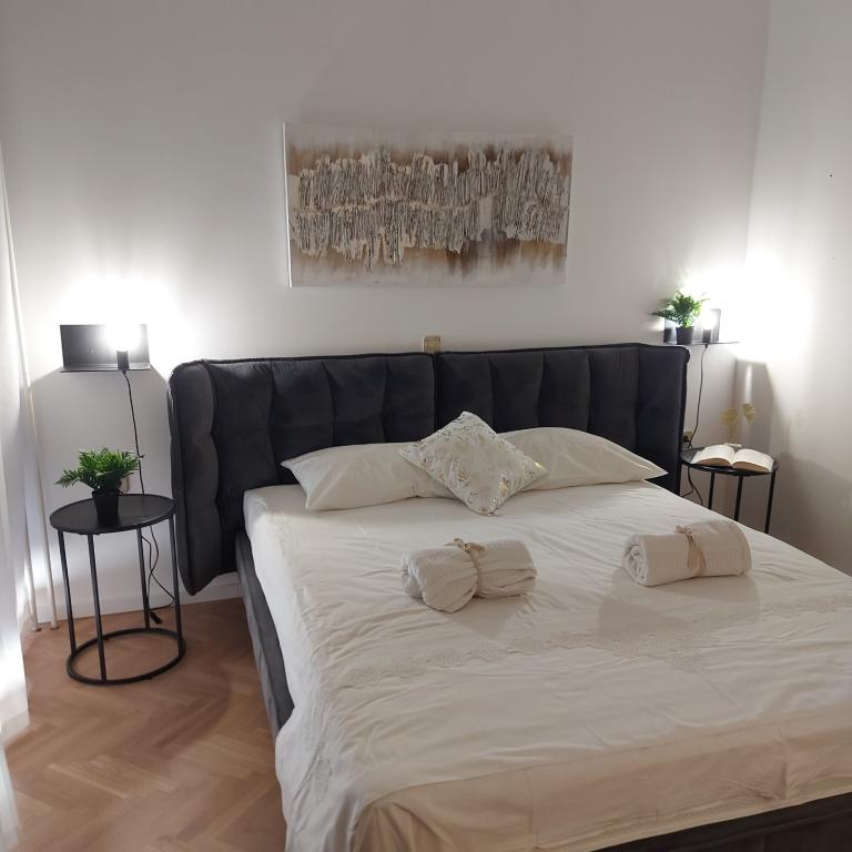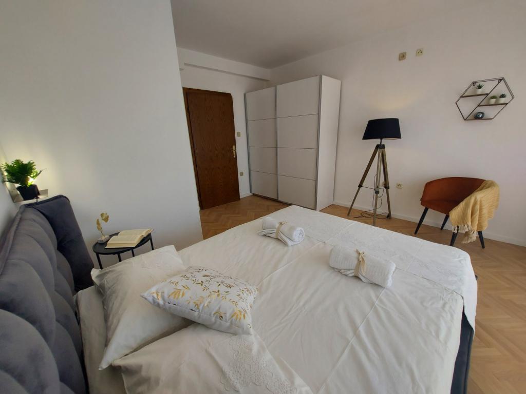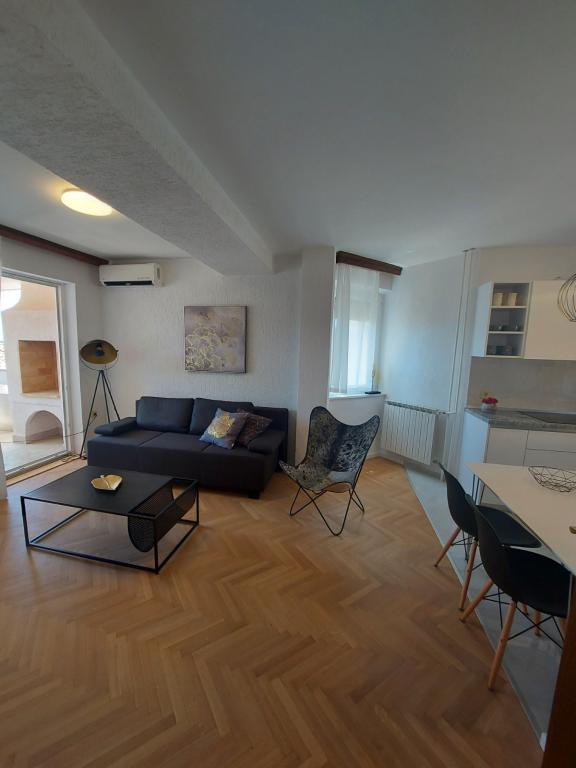 Nos appartements sont situés au premier étage d'une maison familiale. Les appartements sont nouvellement décorés, modernes et équipés de manière fonctionnelle (WI-FI, climatisation, lave-vaisselle) et offrent un séjour agréable et paisible. Un parking fermé gratuit est disponible dans la cour de la maison. Dans la cour il y a un gazebo avec barbecue où vous pourrez profiter de l'ombre. Les commodités essentielles telles que les plages, les restaurants et les magasins sont accessibles à pied.