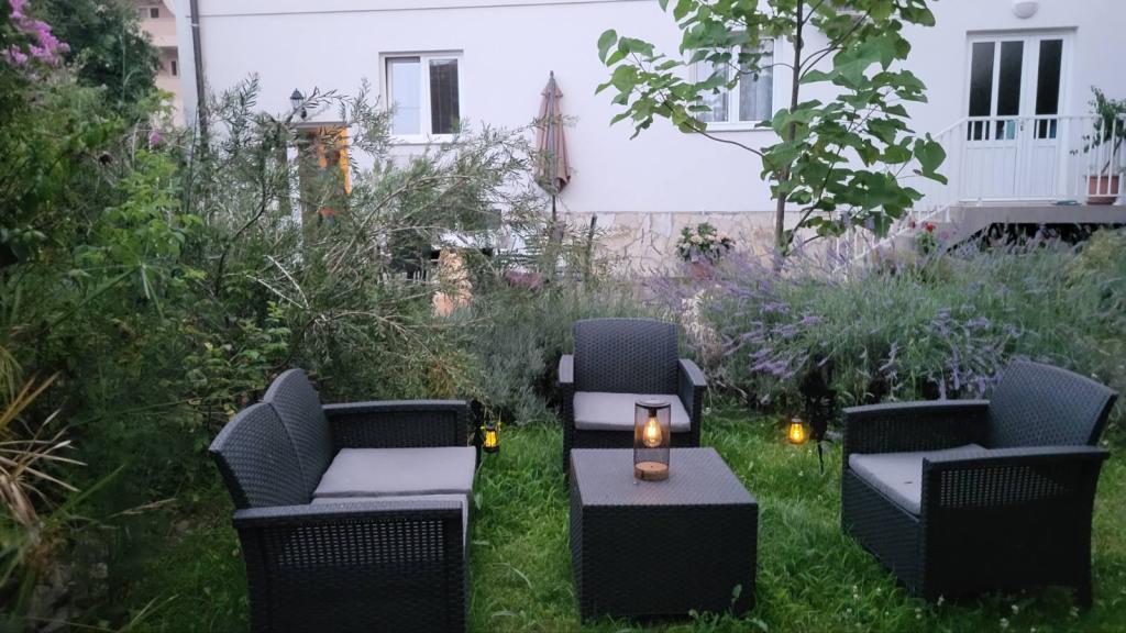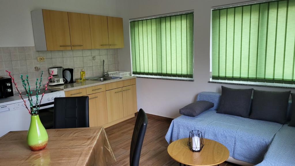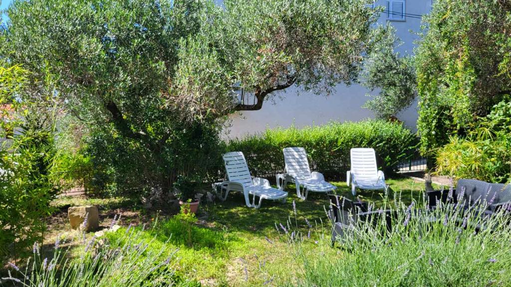 Les appartements Padova 2 sont situés dans une partie calme de l'île, près de la plage Padova II, entourés d'un jardin et de verdure de plantes décoratives. Ils sont équipés de tout le nécessaire pour des vacances agréables et sans soucis ; lave-vaisselle, lave-linge, micro-ondes, bouilloire, grille-pain, programmes satellite, WIFI... Les appartements sont situés au rez-de-chaussée, disposent d'une terrasse et d'un jardin propice à la détente à l'ombre des oliviers. Il y a un grill sur la terrasse, à la disposition des clients. La plage est à 50 mètres et le long de la belle promenade au bord de la mer, la vieille ville de Rab est accessible en 20 minutes. Il y a un bateau-taxi à proximité immédiate pour ceux qui aiment les promenades en bateau. Le parking se trouve à côté des appartements et est gratuit.