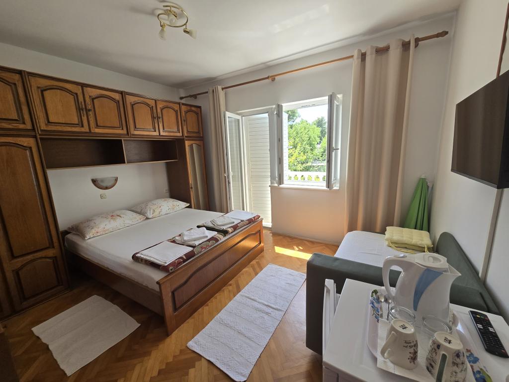 Le bâtiment est une maison de famille avec un grand jardin, grand jardin recouvert de verdure et de fleurs. Nous avons une longue tradition de tourisme. La maison est située à 5min à pied de la mer, où il y a une grande plage de sable fin. La plage est un magasin, restaurant, magasin de tabac, salon de coiffure, fitness et autres installations. Le centre-ville a un 20 minutes de marche le long de la côte, ainsi que la possibilité d'un bateau-taxi.