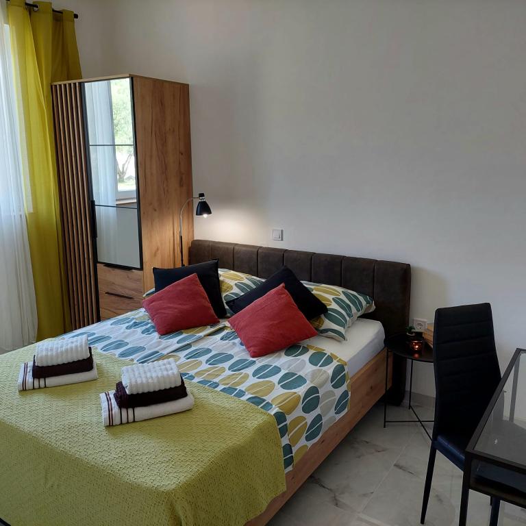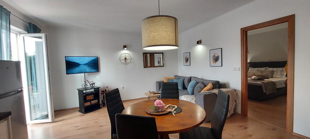 En savoir plus Unités d'hébergementLe solde restant est payable en espèces le jour de l'arrivée - à l'entrée dans l'appartement. L'acompte pour la réservation est versé à hauteur de 30 à 35 % sur notre compte bancaire. Après le paiement de l'acompte, nous vous envoyons la confirmation de réservation (voucher). Le prix par nuit de l'Appartement pour l'année 2025 comprend un Appartement entièrement équipé avec draps et serviettes, taxes, eau, électricité, 1 x climatiseur. Le prix de l'appartement A2 RELAX est pour deux personnes, et une personne supplémentaire peut être hébergée sur un lit moyennant un supplément. Prix pour un enfant 15% -20% du prix de base pour une personne. Le prix de l'appartement A4 est pour jusqu'à 4 personnes. Possibilité d'accueillir 1 personne supplémentaire moyennant un supplément de 20.-e par nuit. Les prix sont par nuit. COÛT SUPPLÉMENTAIRE : Nettoyage final de l'appartement de 50 à 80. La taxe de séjour n'est pas incluse dans le prix de l'appartement et est facturée en supplément. Heure d'arrivée après 15h30 Heure de départ jusqu'à 09h30. Dans la période du 01. 07. 2025. - 31. 08.2025. Heure d'arrivée à l'appartement à partir de 16h00 et départ de l'appartement jusqu'à 09h00