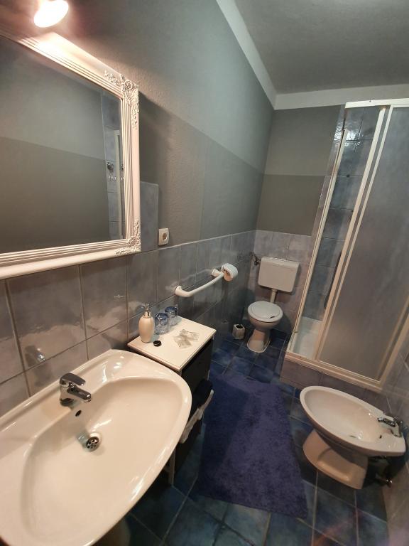 L'appartement Villa Ilijic avec piscine d'hydromassage-jacuzzi est situé à 150 mètres de la plage Padova 3 à Banjol sur l'île de Rab. Notre Appartement Villa propose des appartements climatisés avec accès Internet sans fil haut débit gratuit disponible dans chaque appartement. Notre grand jardin est décoré pour être agréable et relaxant, avec une grande cour avec une piscine d'hydromassage-SPA - jacuzzi, une allée pavée, une terrasse avec des sièges, une terrasse avec un grill, un gazebo avec une cheminée et une cuisine extérieure, donnant une atmosphère supplémentaire à notre Villa dans laquelle nos touristes peuvent se détendre et profiter. Un parking gratuit est disponible sur place et aucune réservation n'est requise. Nos touristes peuvent également utiliser des chaises longues gratuites. Tous les appartements disposent de terrasses ou de balcons. Chaque appartement se compose d'un hall d'entrée, cuisine, salle à manger et salon, chambre, salle de bain et WC, terrasse - loggia ou balcon. Toutes les unités d'hébergement comprennent un écran LCD LED avec programmes satellite...