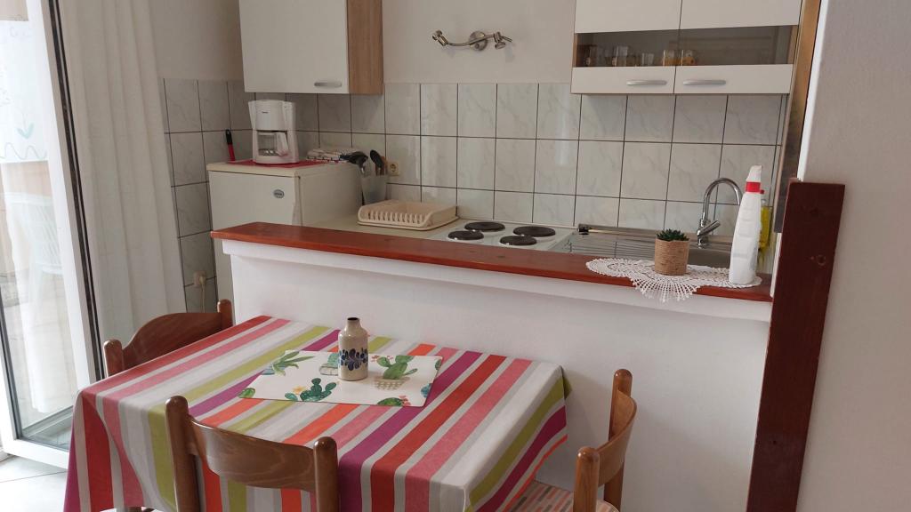 Tout est parfait! Appartement soigné, petit balcon idéal pour 2 personnes. Parking à l'ombre. Boutique et boulangerie à 2 min à pied. Mme Sanja et sa mère, très gentilles, nous avons eu des tomates et des poivrons faits maison à 2 reprises. Au centre à environ 20-30 minutes à pied. Je recommande une promenade pour y arriver, et retour en bateau pour environ 15 kuna par personne à Marina 3 et de là encore 2 minutes à pied de l'appartement. Absolument rien à redire! Les salutations