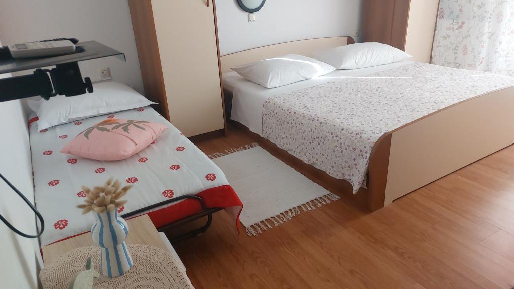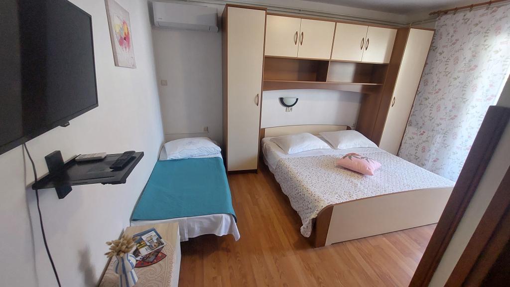 Nous louons des appartements entièrement équipés et climatisés (pour 2-5 personnes) + TV SAT/LCD, chacun avec sa propre terrasse ou balcon + place de parking dans la cour et internet haut débit. Nous proposons également des chambres climatisées pour 2-3 personnes, chacune avec sa propre terrasse, WC/WC, et la possibilité d'utiliser une cuisine entièrement équipée, une salle à manger (SAT/LCDTV) et une agréable terrasse extérieure avec salon de jardin. Nous sommes situés à proximité d'une belle plage de sable et de galets (200-250m) et de toutes les autres commodités nécessaires pour des vacances d'été agréables et sans soucis (magasins, restaurants, pizzerias, bars de plage et cafés, installations de loisirs, programmes pour enfants...) . Du centre historique de l'île de Rab, avec sa riche histoire, nous sommes à seulement 20 minutes à pied par une belle promenade en bord de mer.