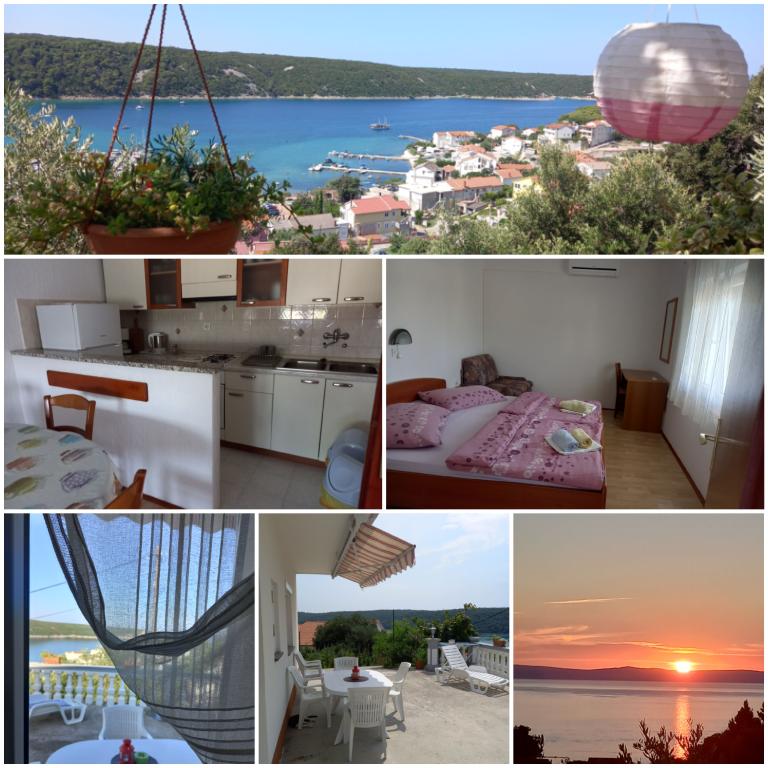 Appartement pour 4 personnes, à environ 300 m de la mer et de la plage. Situé sur une petite colline, avec vue sur la mer, au calme, terrasse, parking, barbecue, Wi-Fi, télévision, lave-linge, climatisation, amarrage pour bateau jusqu'à 7 m.