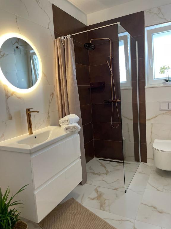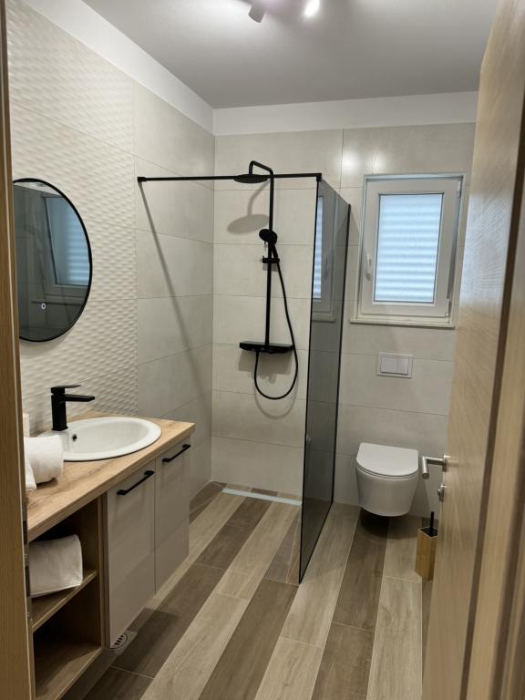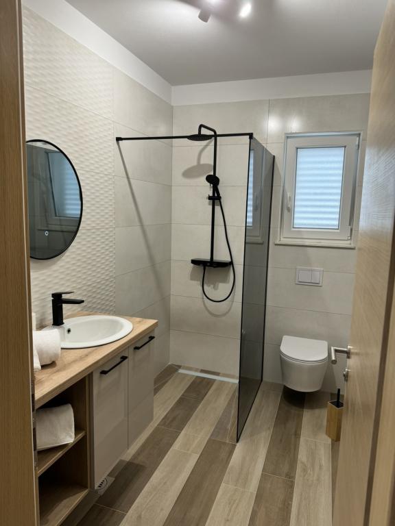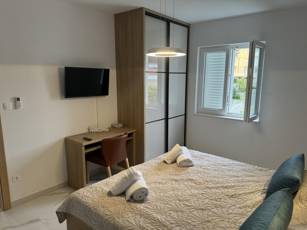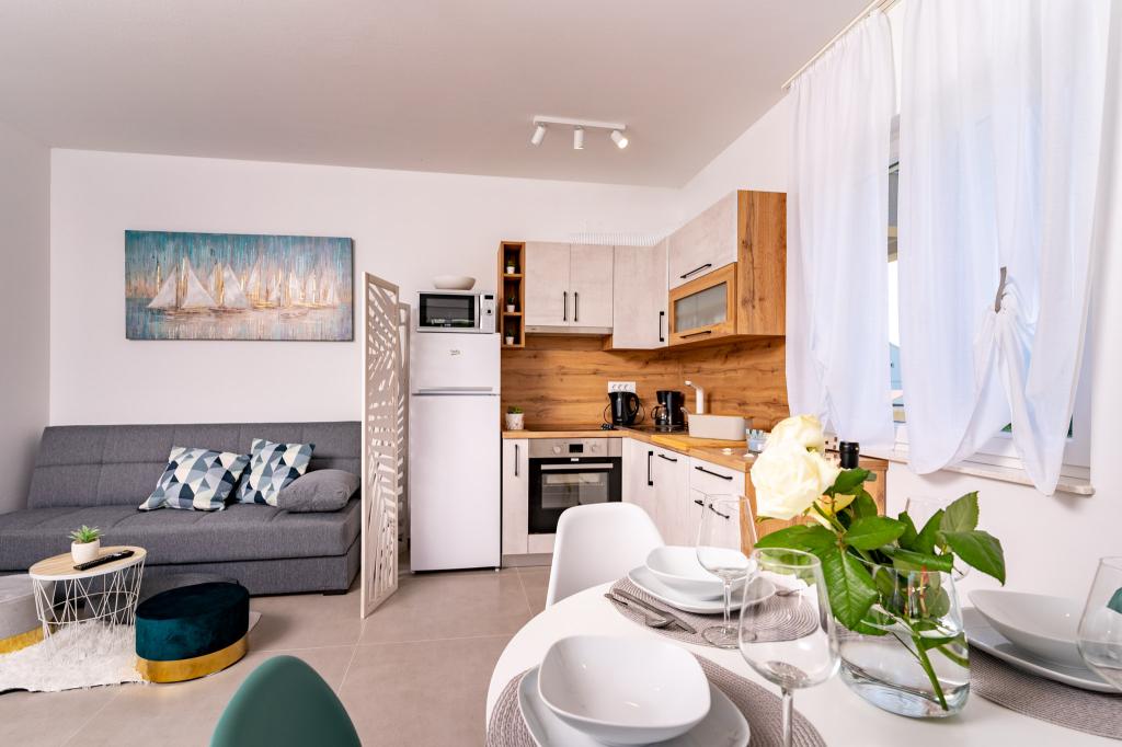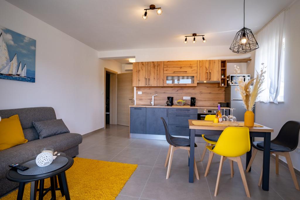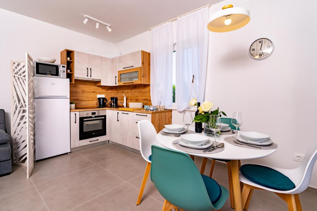 Appartements entièrement meublés de façon moderne dans un quartier calme de l'île de Rab Les appartements sont situés à 5 minutes à pied de la plage de Grat et à 10 minutes à pied du vieux centre de Grat, les supermarchés sont également à 200 mètres du bâtiment. Il y a un grand parking gratuit et une aire de jeux pour enfants devant le bâtiment.