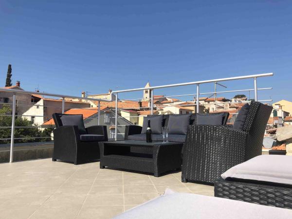 Vivez des vacances d'été inoubliables au cœur de la ville de Rab sur l'île de Rab dans nos appartements confortables situés dans le cadre paisible des remparts de la vieille ville. Vous ne manquerez pas l'excitation lorsque vous admirerez la magnifique vue panoramique depuis la terrasse sur le toit du plus grand appartement, où vous profiterez d'une vue incroyable sur les quatre célèbres clochers de la ville. Ne manquez pas l'occasion de profiter de la proximité de la plage de la ville, à seulement 2 minutes à pied de l'appartement, ou d'explorer les rues et les commerces de la rue principale, à seulement 30 mètres de la propriété. Et si vous voulez essayer la cuisine locale, le restaurant est à seulement 10 mètres de l'appartement ! Avec un parking gratuit pour tous les clients dans le parking de la ville, situé à côté du front de mer à quelques minutes à pied de l'appartement, vous n'aurez à vous soucier de rien. Réservez maintenant et vivez des vacances d'été inoubliables au cœur de la ville de Rab sur l'île de Rab !