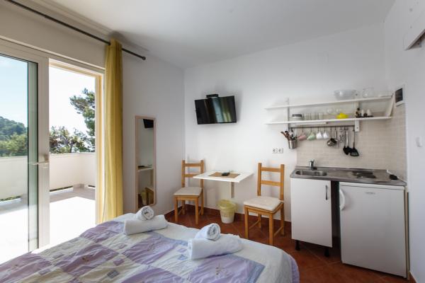 En savoir plus Unités d'hébergementPour confirmer la réservation, il est nécessaire de verser le montant d'une nuit à titre d'acompte. Le jour de l'arrivée, l'appartement et la chambre peuvent être entrés après 12 heures, et le jour du départ, l'appartement et la chambre doivent être libérés avant 10 heures. Les appartements A2 2, A2 1 (a) et A2 1 (b) sont situés dans un autre bâtiment, à 400 m de la mer.
