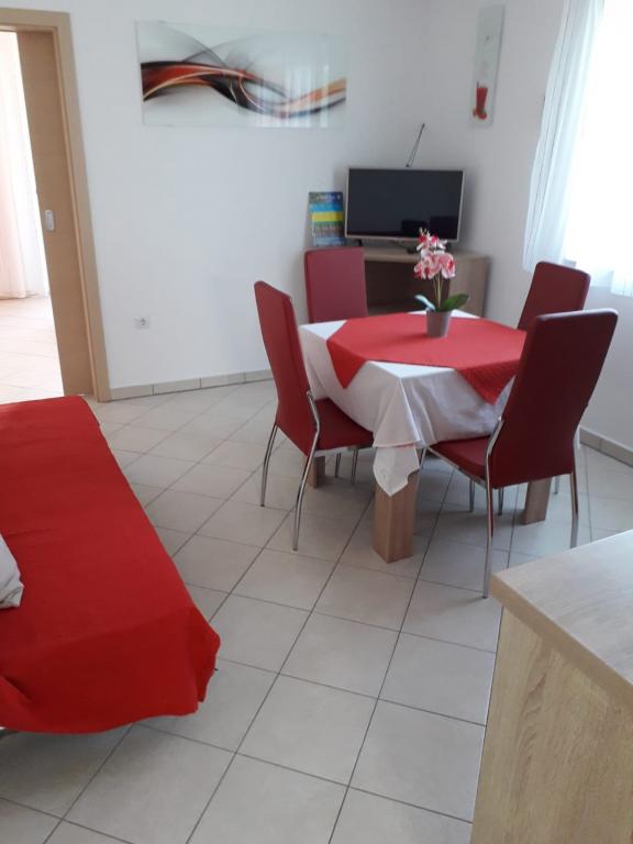 L'appartement A 6 2 est un appartement confortable avec 3 chambres et 4 salles de bains. Il est situé dans une partie calme de l'île, près du centre et de la plage de la ville. Non loin de l'appartement à environ 150m il y a un supermarché si proche des appartements que vous avez tout. La nuit, vous pouvez aller au centre en flânant le long de la mer. Le parking est juste en face de l'appartement et convient aux personnes qui n'aiment pas les escaliers.