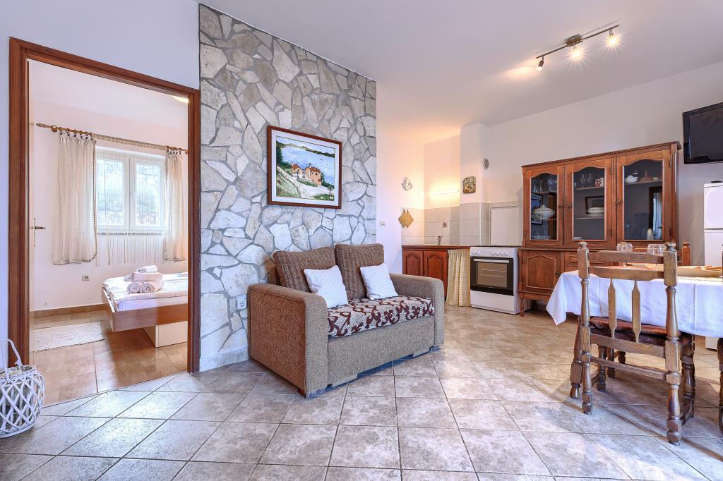 Maison avec plusieurs appartements dans le village de Drenje. Située à 5 minutes en voiture de la plage et à 15 minutes de Labin, elle propose des appartements de plain-pied offrant une intimité totale et un cadre idéal pour se détendre. Le premier appartement, d'une superficie de 42 m², comprend une chambre avec un lit double (possibilité d'ajouter un lit d'appoint), un séjour avec coin repas, une cuisine entièrement équipée, une terrasse avec vue sur la mer et une salle de bains. Le second appartement, d'une superficie de 56 m², dispose de deux chambres avec chacune un lit double, d'un séjour avec coin repas, d'une cuisine entièrement équipée, d'une terrasse avec vue sur la mer et d'une salle de bains. Le restaurant et le supermarché les plus proches sont à 5 minutes en voiture. Situés dans un environnement calme et paisible, ces appartements offrent tous les atouts pour des vacances parfaites !