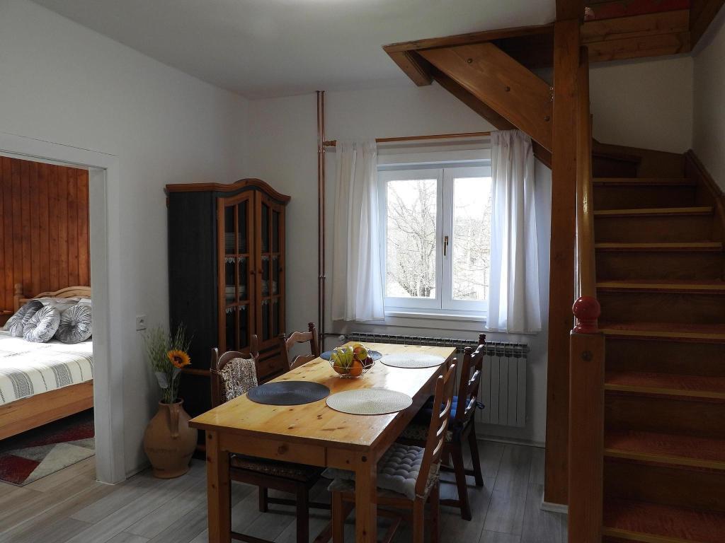 La maison de vacances Elf est située dans un endroit calme dans la ville de Kupjak. L'établissement se trouve à 60 km de Rijeka et comprend un parking privé et une connexion Wi-Fi gratuite. Le logement dispose de 2 chambres équipées d'un lit double, armoire, table de nuit. La chambre à l'étage dispose d'une antichambre avec télévision et sièges. Salle de bain avec WC, cabine de douche, lavabo avec miroir. Séjour avec canapé lit pour 1 ou 2 personnes, table basse, commode et TV. Salle à manger et cuisine entièrement équipée avec réfrigérateur, four, lave-vaisselle, plaques électriques et bouilloire. Il y a un lit bébé dans l'établissement et les serviettes et le linge de lit sont disponibles dans l'établissement. Vous avez également à votre disposition un canapé en bois, un barbecue à gaz et un jacuzzi pour vous détendre dans la partie couverte de la maison.