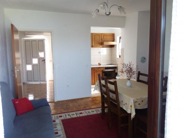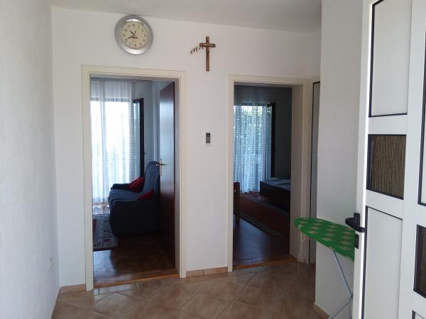 L'appartement est situé dans une maison au premier étage. Les appartements disposent de deux chambres à coucher. Dans une chambre de deux lits simples. La deuxième chambre a un lit double et un lit sur le côté. De cette salle et sortie sur un grand balcon donnant sur la mer et le centre Miocic Rtina. Le salon dispose d'un canapé (canapé), table à manger avec 6 chaises et TV. Il ya aussi un balcon. La cuisine est connecté avec salon et est équipée avec vaisselle et ustensiles de cuisine pour 6 personnes. La cuisine est équipée avec cuisine el.pločom, four, réfrigérateur et bouilloire. La salle de bain est équipée d'une douche standard et el.bojlerom. Air conditionné a été installé dans le couloir. L'entrée de l'appartement avec une grande terrasse qui peut également être utilisé comme une douche extérieure et barbecue. Pour la plage, vous avez à marcher seulement 10 secondes. Distance à la boulangerie et un restaurant est à 400m alors que le magasin (mini-marché) et d'autres restaurants 800m.