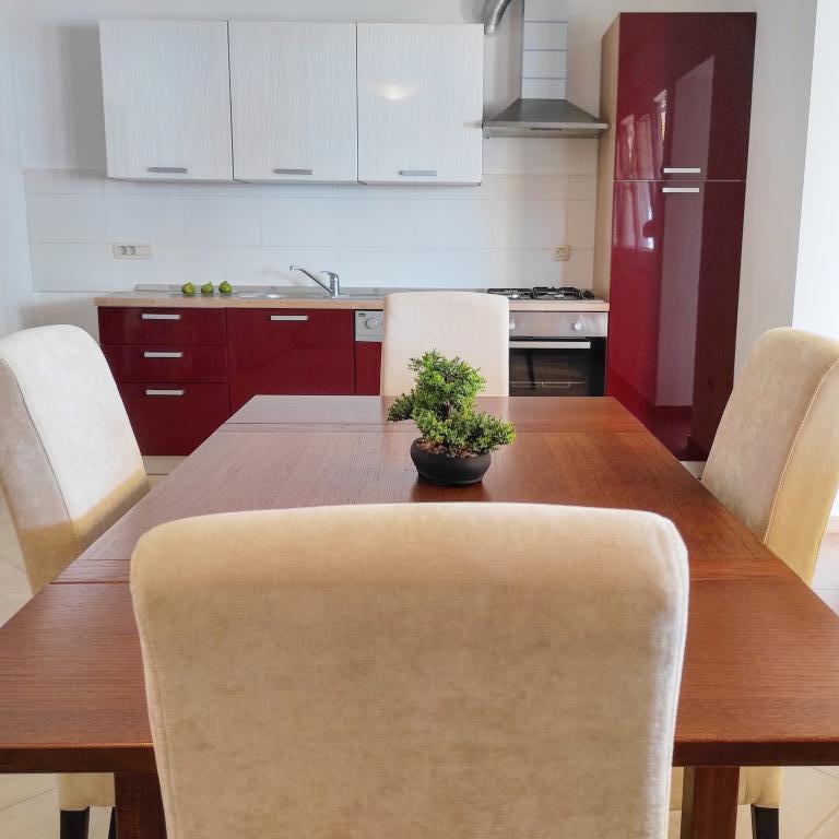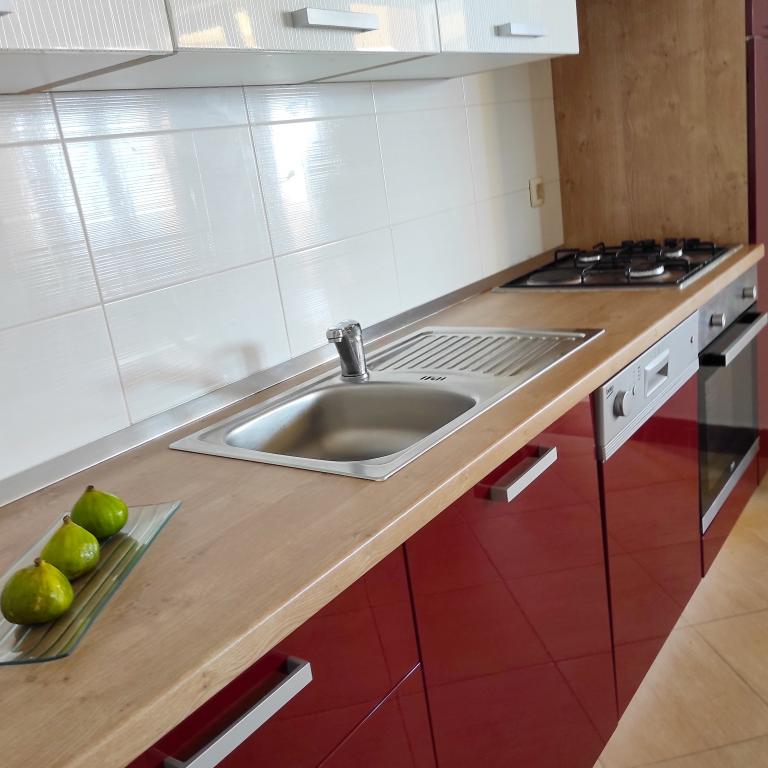 L'appartement est propre et bien entretenu. Très bien équipé. Grand balcon couvert. Quartier calme et paisible. Ville, plage, restaurants, commerces, tout à 5-10 minutes à pied. Grands propriétaires Marina, Ivan et leur fils, serviables en tout, gentils et toujours souriants, nous nous sommes sentis chez nous. Merci Je le recommande de tout mon cœur.