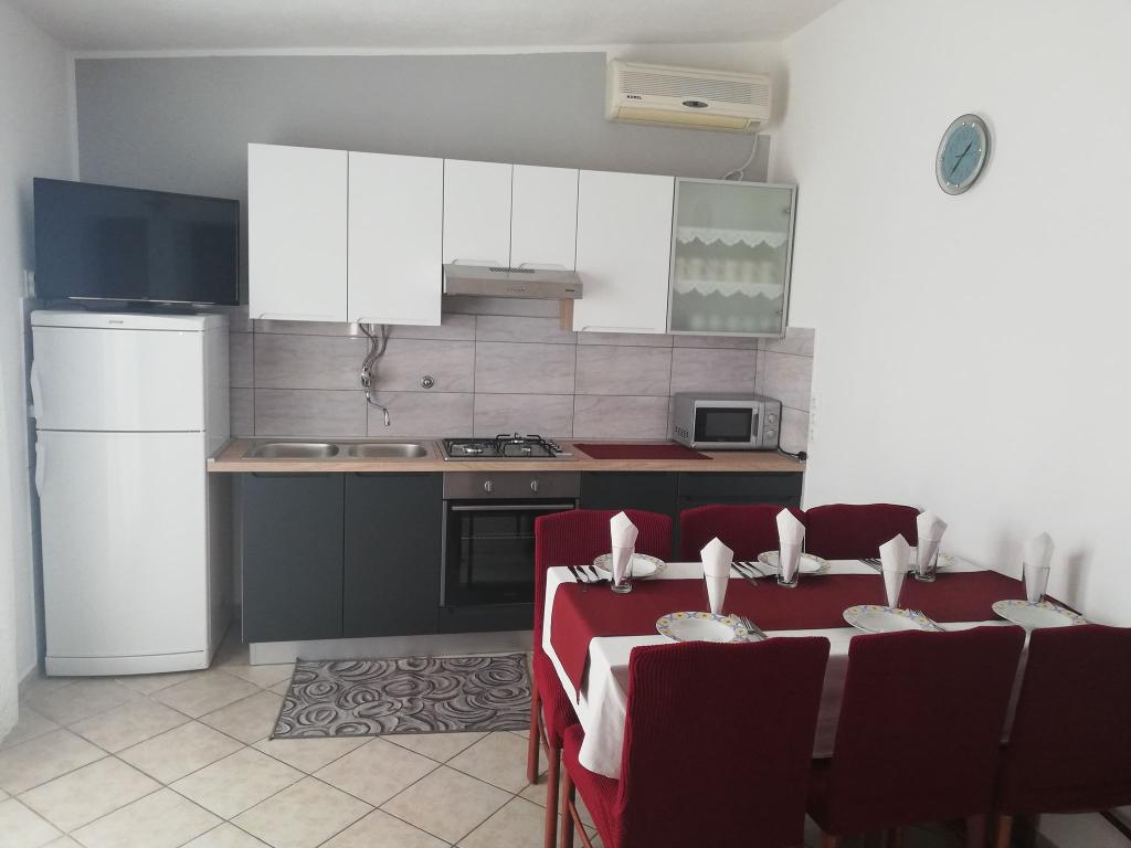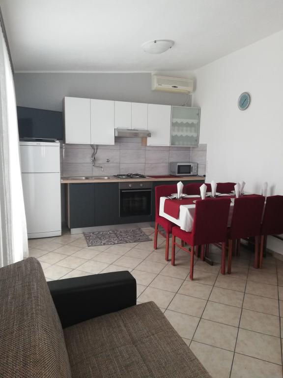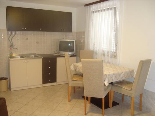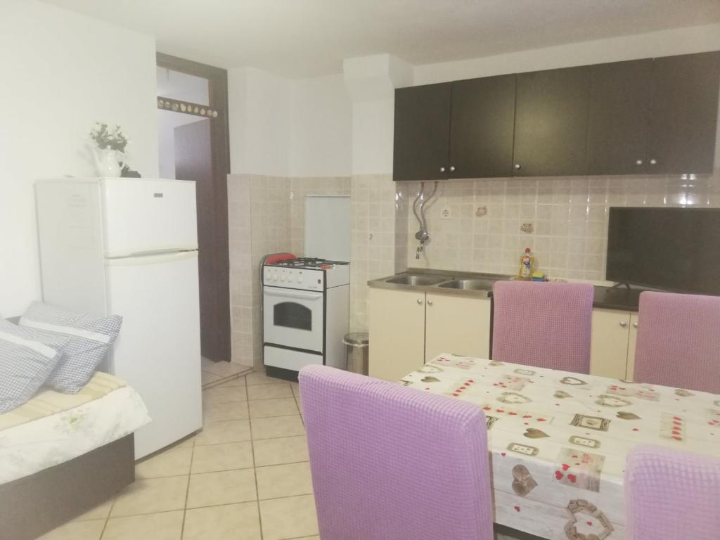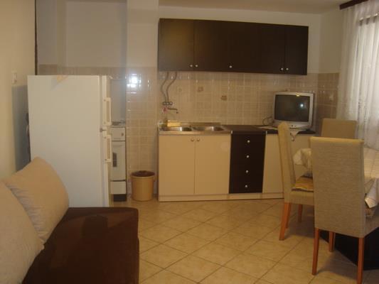Les appartements sont dans un endroit calme, entièrement meublés. La cuisine dispose de tous les ustensiles nécessaires pour conserver et servir les aliments et les boissons. Ils ont également un réfrigérateur avec congélateur, cuisinière à gaz / électrique avec four. Les appartements sont climatisés. WiFi La salle de bain a une douche, WC, lavabo avec miroir. À côté des appartements se trouvent des terrasses couvertes avec de larges vues sur la mer. Barbecue en maçonnerie. À côté des appartements est prévu un parking dans votre propre cour. La plage est à 70 mètres. La plage est idéale pour les enfants. Les installations supplémentaires sur la plage comprennent une piste de bowling et un filet de volley-ball aquatique.