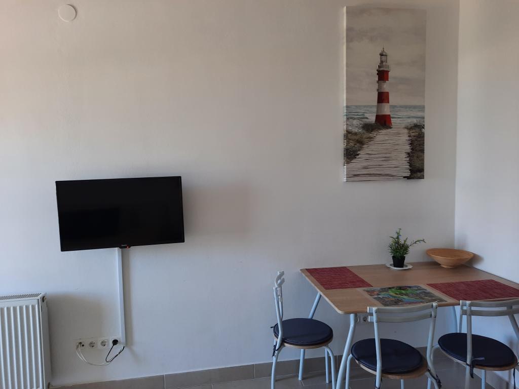 BIENVENUE aux appartements FLOBI! Nos cinq appartements joliment meublés sont à seulement 300 mètres de la célèbre plage de galets. Nos appartements 3 étoiles sont bien équipés avec climatisation, WiFi gratuit, télévision par satellite, une cuisine entièrement équipée et un balcon privé avec une vue magnifique sur la mer. Une machine à laver est disponible sur demande. Il y a un parking gratuit et un espace barbecue à l'extérieur. Il est particulièrement pratique que vous puissiez rejoindre tous les commerces pour les besoins quotidiens en quelques minutes à pied (tels que supermarchés, boulangerie, boucherie, médecins, pharmacie, bureau de poste, guichet automatique, restaurants, cafés, marché et église). Si vous avez des questions supplémentaires, n'hésitez pas à nous contacter via le formulaire de réservation. Les appartements FLOBI se réjouissent de votre arrivée !