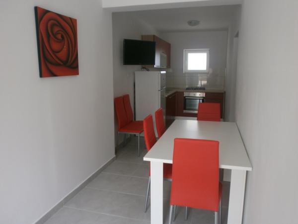 Les appartements nouvellement construits au rez-de-chaussée d'une maison familiale et un confortable appartement de 85 m2 au premier étage de la maison sont entièrement équipés (climatisation, antenne parabolique, Internet, micro-ondes). Situé à 30 mètres de la mer et à 50 mètres du centre-ville avec des magasins, restaurants, boucheries, pharmacies, bureaux de poste, ambulances et bibliothèques.