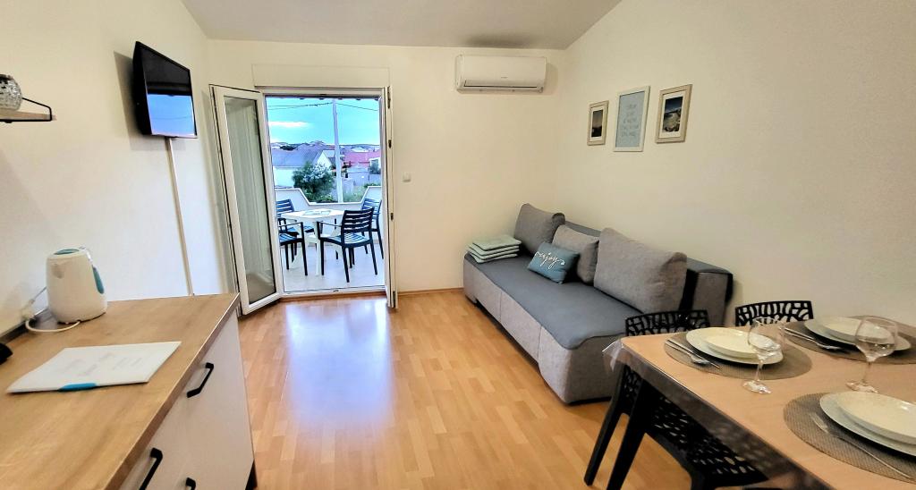 Appartement neuf et propre. Plage au bout de vos doigts. Situé à quelques pas du bureau de poste, distributeur de billets, des boulangeries et des restaurants. Hôtes excitables et toujours souriant. Juste à 20km de la belle Zadar. L'endroit idéal pour des vacances avec un enfant (dans notre cas les deux ans). Je recommande à la fois la personne qui veut se prélasser sur la plage, ainsi que ceux qui aiment explorer, comme Zadar, Nin.