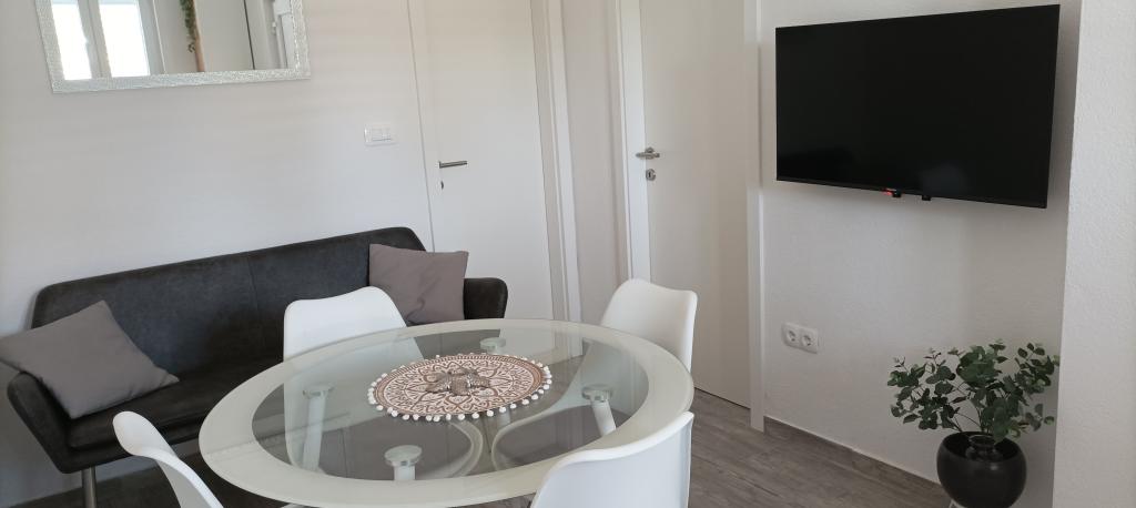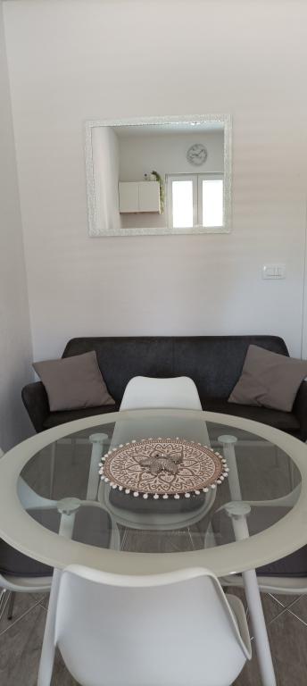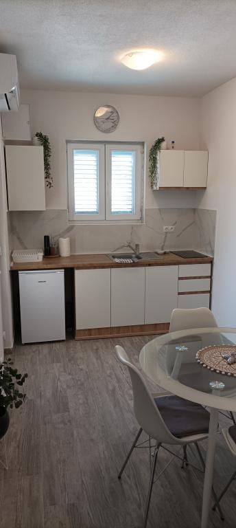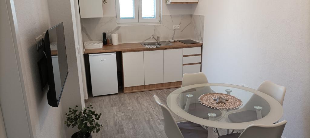 Il s'agit d'un appartement dans une maison familiale au rez-de-chaussée. La superficie de l'appartement est de 30 m2 et il dispose d'un balcon avec un coin salon. L'appartement se compose d'un coin cuisine avec un salon, une salle de bain et une chambre avec un lit double et un canapé convertible en lit pour une personne (si nécessaire). Il convient pour un maximum de deux ou trois personnes. Un parking gratuit est disponible. La distance de la plage est de 200 mètres. Il y a plusieurs restaurants, une épicerie, un café et une boulangerie à Ražnje.