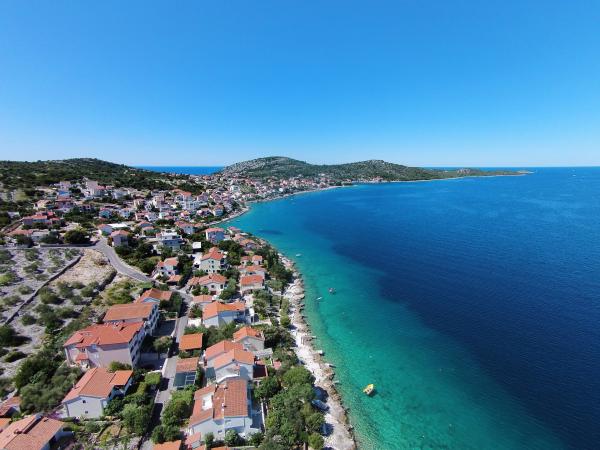 Taxe de sejour est inclus dans le prix.Tous les clients bénéficient d'un accès gratuit à internet, au parking, à la douche extérieure, au barbecue et au jardin pour enfants. Tous les appartements sont climatisés (tarif sur demande). Un emplacement pour bateau est disponible à proximité (sur réservation obligatoire – tarif sur demande). Devant l'appartement se trouvent une plage de galets et une petite plage de pierres naturelles. La plus grande plage de galets est située en direction du centre-ville, à Ražanj, à seulement 10 minutes à pied en longeant la mer. Chaque matin en été, un camion ambulant proposant des produits frais passe dans notre rue. Des excursions sont organisées en été au départ de Ražanj ou de Rogoznica vers les principales villes touristiques des environs et vers les parcs nationaux de Krka et de Kornati. Un sentier de randonnée et de cyclisme ainsi qu'un centre de plongée se trouvent à 600 mètres.