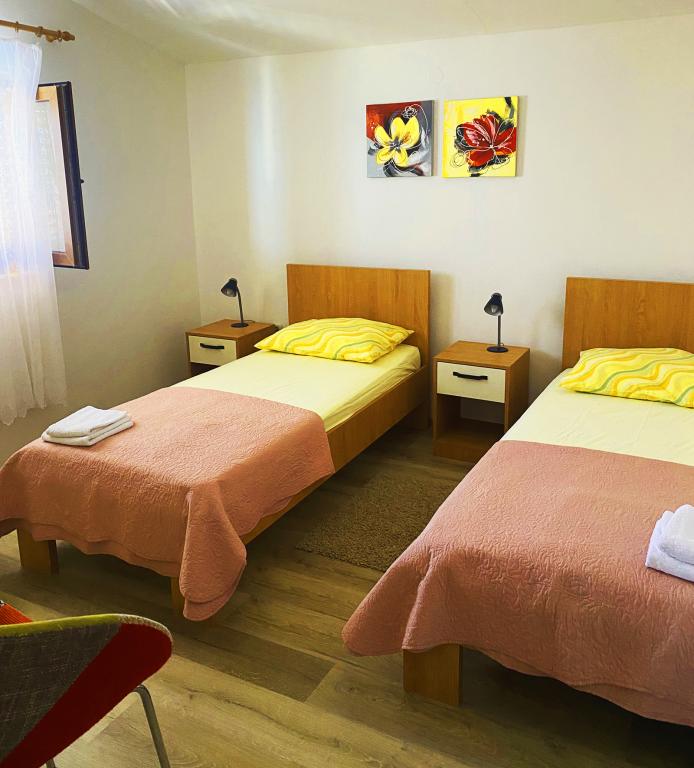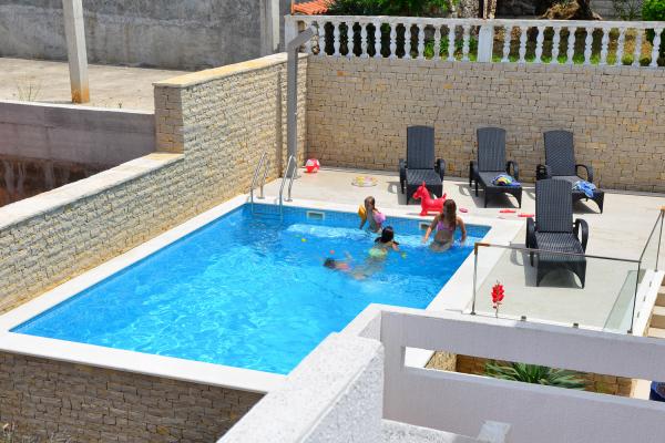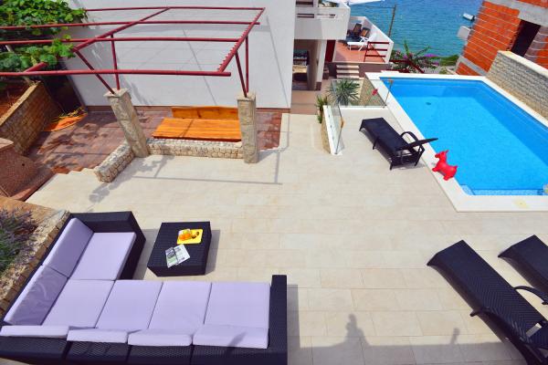 Les appartements sont très confortables et sont situés dans une maison près de la mer. Juste au-dessus de la petite plage. La plage est de sable fin et idéal pour les familles avec enfants. Les clients qui souhaitent un séjour plus intime de la mer peut opter pour des pièces stijenovite de la côte qui peut être atteint en quelques minutes à pied. Les appartements se composent de deux chambres spacieuses, salle de bains, cuisine et grand salon. Chaque appartement dispose d'une terrasse avec table et chaises. Nos clients bénéficient de café du matin sur la terrasse qui offre une vue imprenable sur la mer et la mer. A côté de la maison est une piscine partagée par les clients logés dans nos deux appartements. A côté de la piscine est équipée d'un grand jardin avec des chaises longues et table à manger. Les clients peuvent utiliser une nouvelle grille qui est défini pour leur utilisation. L'appartement est l'utilisation d'Internet gratuitement. Distance à l'étroitesse du marché est de 50 mètres. A la même distance est un restaurant / pizzeria. Distance de la ville Ražanj est de 500 m. Le plaisir d'une promenade à Ražanj parce que le chemin à côté de la mer