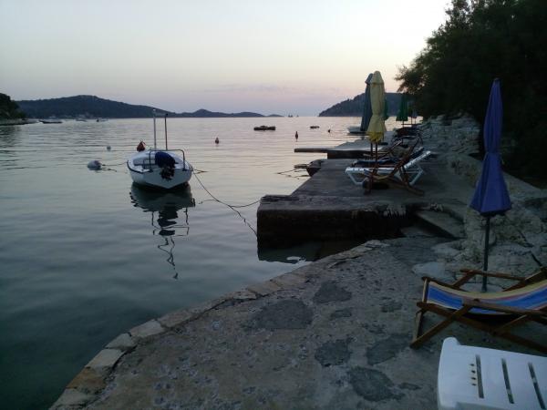 Endroit calme, hôtes très gentils, serviables dans tout et accueillants. Nous sommes restés 7.2017. Mer calme, eau chaude, entrée raide convient aussi pour les enfants. Parasols pour les invités. Plage à proximité, à quelques pas de l'appartement. Sur toutes les portes et les fenêtres de protection contre les moustiques, vous pouvez ainsi ouvrir la fenêtre toute la nuit et dormir dans l'odeur inhalée de la mer. La maison est bien isolée et pas chaude, donc nous avons utilisé la climatisation seulement de temps en temps. Il a une douche extérieure avec de l'eau chaude, si quelqu'un veut prendre une douche en quittant la mer. Du pain, du pain, des friandises, des fruits et légumes, du poisson et parfois des glaces, et à quelques pas de la maison, sont inclus tous les matins. Très confortable à tous égards. Près d'un beau quartier pour la marche. Parking en face de la maison. Vous avez simplement une garantie pour des vacances merveilleuses. Nous recommandons à tous ceux qui veulent vraiment se détendre.