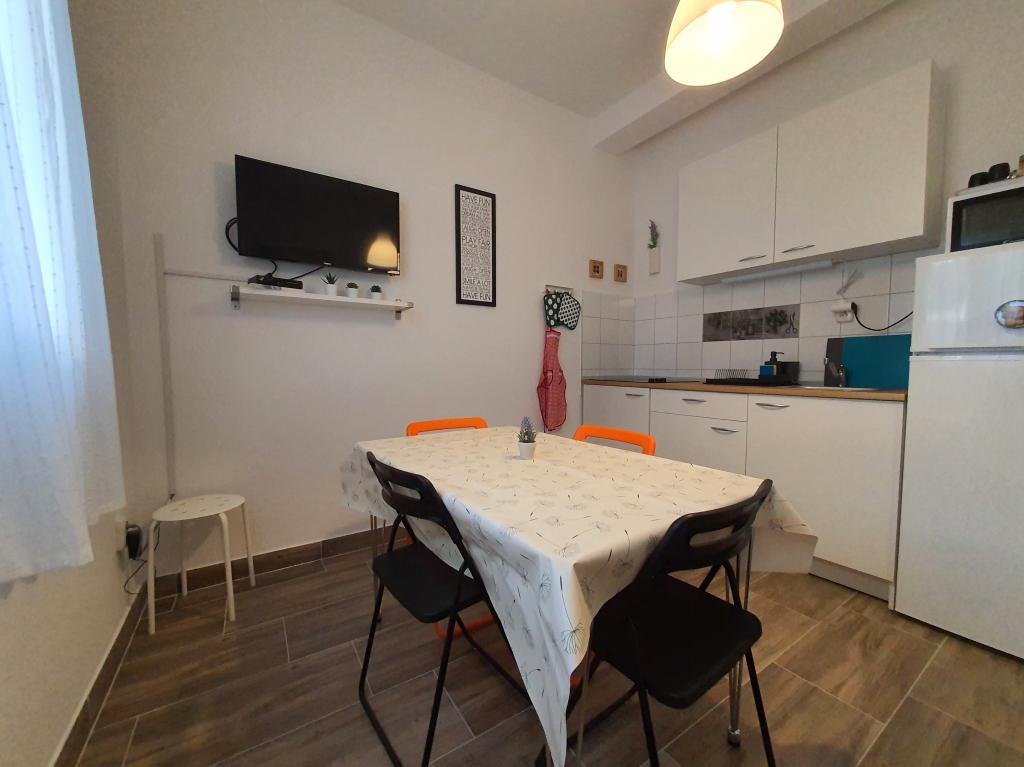 L'appartement The D est situé à Rogoznica, Šibenik, dans la baie de Lozica. Appartement entièrement équipé situé au rez-de-chaussée d'une maison familiale, première rangée de mer. A 30 m d'une belle plage adaptée aux enfants et aux adultes. A proximité se trouve la célèbre Marina Frapa avec toutes les installations pour les jeunes.