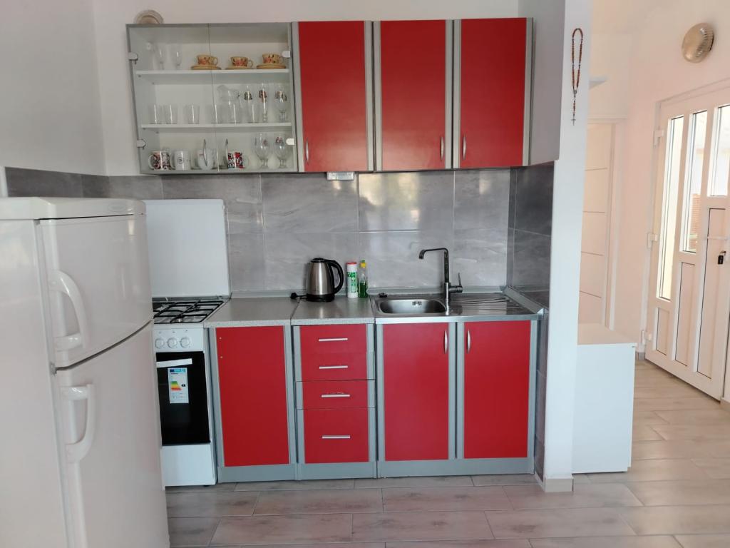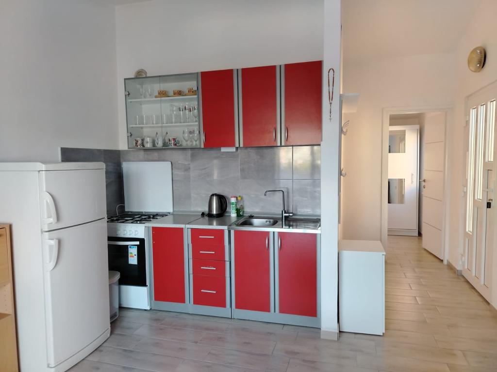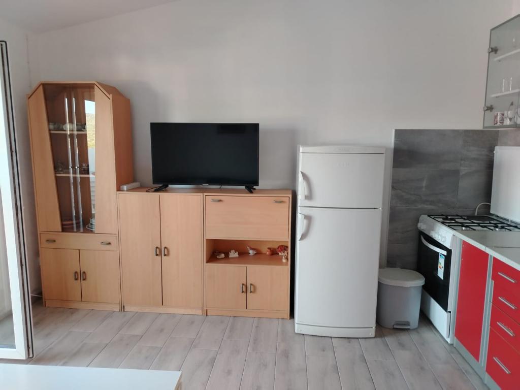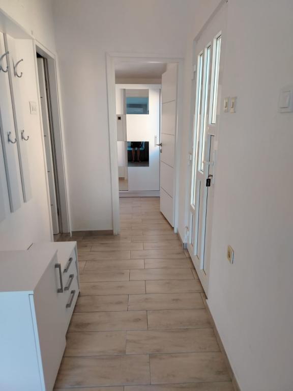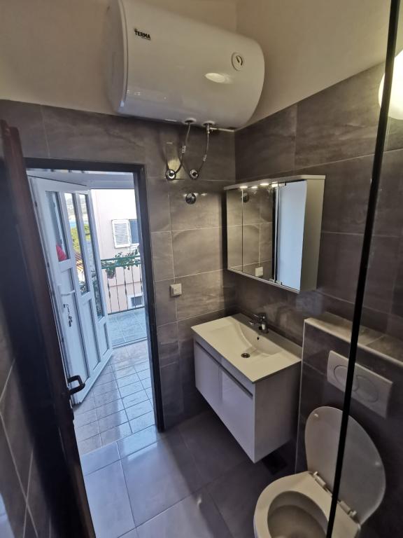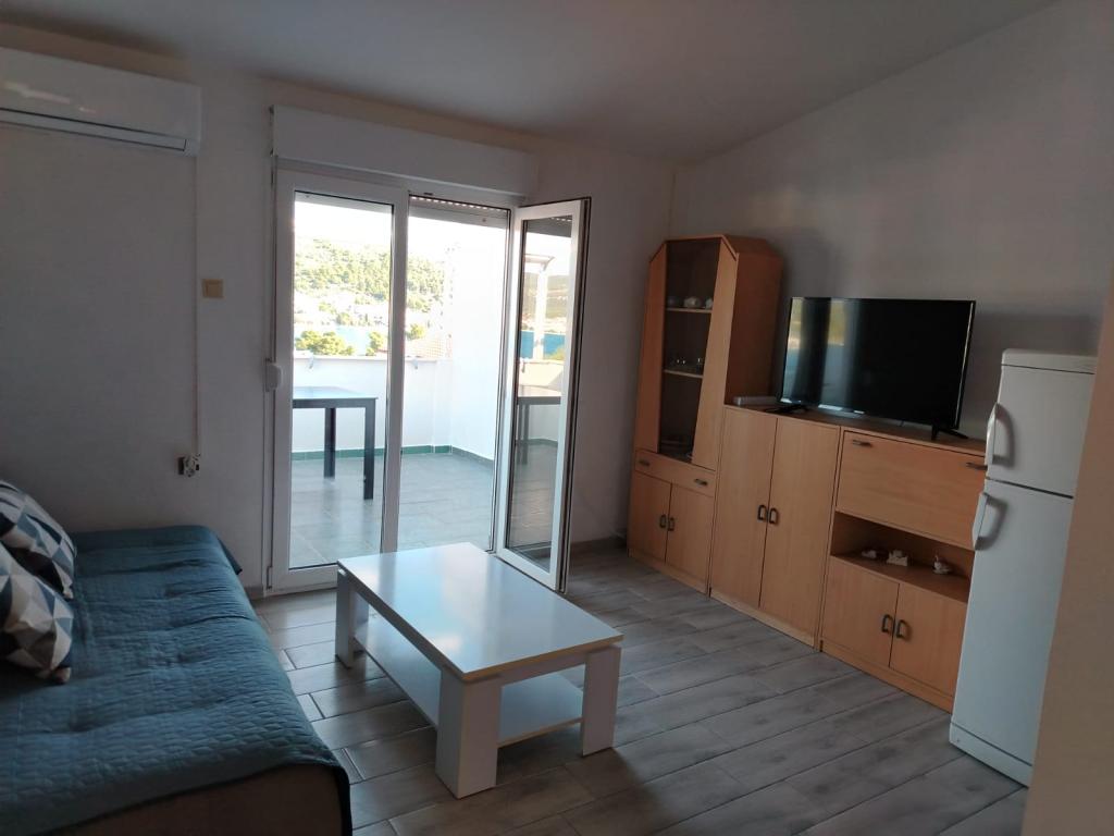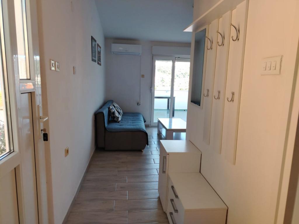 Appartement entièrement meublé dans un quartier calme de Rogoznica (partie Crljina). L'appartement est une chambre pour 2 personnes (lits peuvent être réunis ou séparés), d'une cuisine et d'une salle de séjour avec un canapé qui peut se transformer en un lit double, une salle de bains et une terrasse avec vue sur la mer. La maison se trouve à 100 mètres de la plage et à 10 minutes à pied du centre ville.
