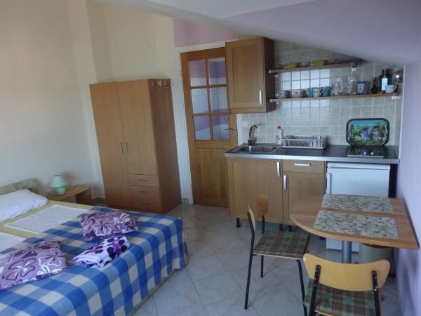 Les appartements sont très propres, comme décrit. Plage rocheuse, avec descente à l'échelle, mais au centre est une belle plage avec une douce descente. Il y a des bars sur la plage, l'endroit est recommandé pour les gens qui aiment la paix. Parfait pour les familles avec enfants. Le seul inconvénient de la chambre, c'est qu'ils n'ont pas de télévision, mais je le recommande généralement.