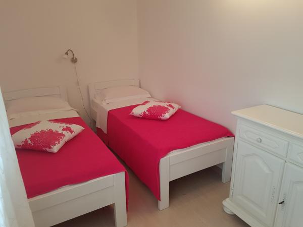 Rogoznica est situé sur la magnifique côte de Dalmatie centrale, entre Split et Sibenik. Vos vacances seront inoubliables, uživavajuci la plus belle mer du bassin méditerranéen, le climat méditerranéen doux, ambiance unique et une cuisine spécifique. 30 m de la mer, loin du bruit et de la vie urbaine, appartements Anita vous offrir un séjour merveilleux avec vue sur la mer. Anita Apartments est situé dans la baie Stupin-Céline trois appartements A *** catégorie, deux au deuxième étage, une sur le terrain. Les appartements situés au deuxième étage ont 56 m2, un appartement au rez-de-chaussée a une superficie de 115m2. Rez de chaussée appartement est pour 8 personnes et dispose de 4 chambres, deux salles de bains, une cuisine et balgovaonu, et une terrasse de 100 m2. Les appartements situés au deuxième étage, deux chambres, avec cuisine entièrement équipée, salle de bain et terrasse de 50 m2. Autour de la maison est de 1500m2 verte appartement parka.Svaki dispose d'un espace de parkng à l'ombre dans la maison de dvorštu. La plage est de galets et 30 m de la mer.