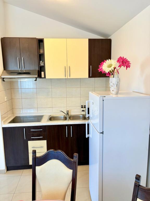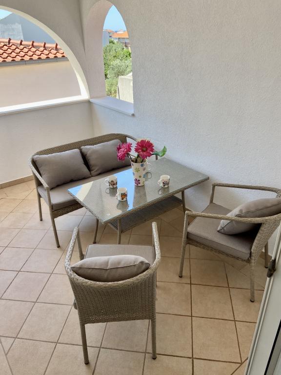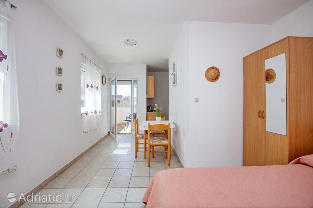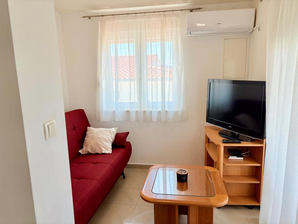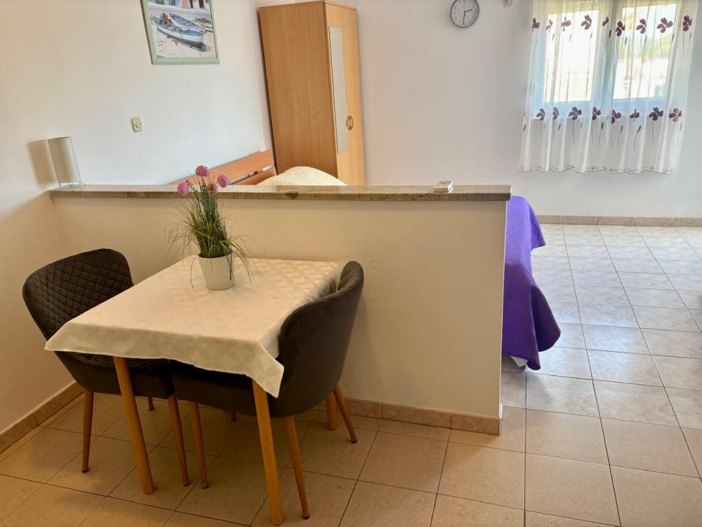 Antea 4 appartements de luxe de deux studios pour deux adultes où vous avez tout ce que vous avez besoin dans une seule pièce. Peut-être jusqu'à deux lits d'appoint pour les enfants. Appartement 1 a une chambre séparée et une vue sur la mer et Appartement 4 est idéal pour deux petites familles qui veulent rester ensemble. Il y a tellement d'espace à l'autre ne serait pas la peine d'une cuisine commune. Chaque appartement dispose d'une place de parking à l'ombre dans la cour, salle de bains avec douche, TV, satellite, air conditionné, wi-fi. Une station familiale calme.