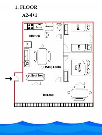 Taxe de sejour est inclus dans le prix.Douches sur la plage Chaises parasol, table et 4 pour la plage pour chaque appartement. Connexion sans fil à Internet, libre, libre. Organiser couchette pour les bateaux et vedettes Entretien linge et le repassage. Les services spéciaux, le transport des déchets vers l'aéroport à domicile.