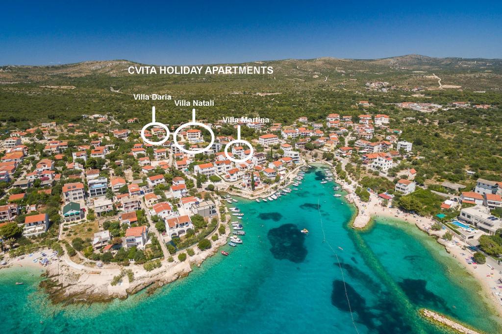 Chers hôtes, si vous recherchez des vacances agréables et relaxantes de haute catégorie dans un environnement convivial, vous êtes au bon endroit ! Dans notre complexe familial, qui s'étend sur environ 5000 m2, nous vous proposons neuf appartements exclusifs répartis dans trois villas, Villa MARTINA (à 30 m de la mer), Villa NATALI (à 100 m de la mer) et Villa DARIA (à 150 m de la mer) ). Notre complexe comprend une cour spacieuse avec une aire de jeux pour enfants, un terrain de sport et une piscine privée avec solarium à l'usage exclusif de nos clients. Les membres de notre famille seront à votre service tout au long de votre séjour, essayant de répondre à tous vos besoins et de rendre vos vacances aussi agréables que possible. Bienvenue aux appartements de vacances CVITA!