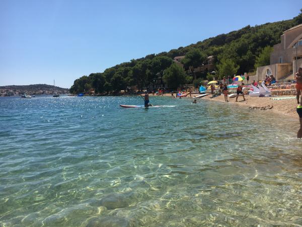 Propriétaire très bel appartement au 1er Actions propres, spacieuses, les ustensiles de cuisine nécessaires. Il serait chaises de plage idéale et parasols pour les clients voyageant beaucoup. Plage remplie de gravier, très propre et oursins gratuit! Les kayaks nous avons offerts, même débutants, apprécié, la plongée est également très riche en événements. Cette partie de Rogoznica est calme céleste. En 10 minutes, nous sommes arrivés à la mer le long de la partie plus occupé de l'île avec ses nombreux bars, restaurants, tavernes, supermarchés, boulangeries, grand marché de légumes et de poisson, belle marina avec discothèque. En 35 minutes vous allez à Trogir et de Split environ 50 minutes et l'offre culturelle est accessible à flot. Nous serons de retour sans aucun doute! Note 1: Restaurant Atrium - avec une délicieuse cuisine dalmate et Note 1: Lantern Tavern, les deux étaient savoureux et à prix favorite dans notre cuisine / à Rogoznica. Cette île peut recommander tous veulent profiter de la paix et la tranquillité en vacances.