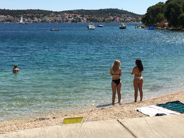 Toujours à la 2e vacances jusqu'au 14/09/14 dans l'App. Delfin nous étions très heureux. Le temps était forte pluie un peu fou. Si on le fait avec les fumeurs et les non-fumeurs vacances serait un auvent au 1er étage à portée de main malgré la pluie, il reste chaud, alors vous pourriez enfin asseoir à l'extérieur sous la pluie. Un grand merci à Maria pour votre délicieux gâteau croate. Depuis le restaurant Atrium à Rogoznica et hobotnica-Peka à Primosten cette année nous étions totalement ravis. Nous aimons cuisiner, de sorte que la courte distance de marche à tous les boulangeries est (sont aussi du pain de grains entiers!), Pour le boucher (bratwurst super compteur et cevapcici), poisson frais tout simplement idéal !!! . Dites- Surtout, la plage Super-sable au Dolphin !!!!