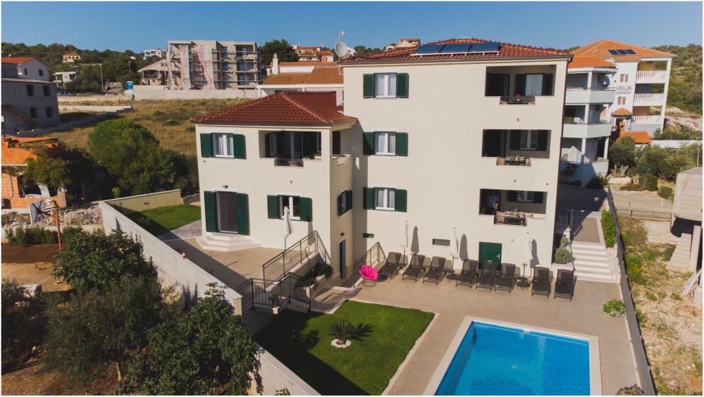 Les appartements Faro sont situés dans une paisible ville méditerranéenne de Zečevo, non loin de Rogoznica, au cœur de la Dalmatie. Grâce à la proximité de la mer, chaque appartement offre une belle vue sur la mer bleue. La piscine et le barbecue vous garantissent également une détente complète dans notre hébergement. L'endroit dégage une atmosphère familiale et les appartements sont un lieu idéal pour des vacances avec des enfants. Le lieu est proche des grands centres et des villes riches en patrimoine culturel et historique