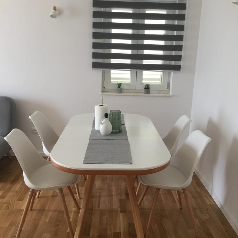 Je voudrais partager mon opinion sur notre séjour dans l'appartement Janja à Rogoźnica. J'ai eu l'occasion de visiter cet endroit deux fois, et les deux fois j'ai été très satisfait. Pendant tout le séjour, nous avons pu compter sur l'aide d'une hôtesse très sympathique, qui a tout mis en œuvre pour que nous ne manquions de rien et qui a en plus gagné la sympathie de nos enfants avec des petites douceurs. Mais même sans cela, les enfants l'aimaient beaucoup. La maison est très soignée et bien entretenue, finie dans un style moderne, la cuisine est bien équipée - bien qu'il n'y ait peut-être pas assez d'espace pour les personnes qui souhaitent jouer le rôle d'un cuisinier méditerranéen. Salle de bain petite mais acceptable. La maison est située à proximité de la mer, dans un quartier très calme. De la terrasse, il y a une belle vue sur la mer et c'est en fait une vue sur la mer, pas seulement un morceau de mer émergeant de quelque part derrière une rangée de maisons. Il convient de noter que la maison se trouve dans la deuxième rangée de la mer - elle est séparée par la seule rangée de villas exclusives directement sur le front de mer, qui ne perturbent pas l'atmosphère du lieu. La plage la plus proche est à 5 minutes à pied. La zone autour du bâtiment est très intime. Ce n'est pas un domaine de maisons de vacances, mais plutôt un quartier résidentiel. Je pense que c'est un endroit parfait pour les personnes à la recherche d'un endroit calme loin de l'agitation de la ville, offrant la possibilité de profiter de soirées chaudes ou de matinées fraîches sur la terrasse avec des vues pittoresques. Je recommande vivement cet endroit.
