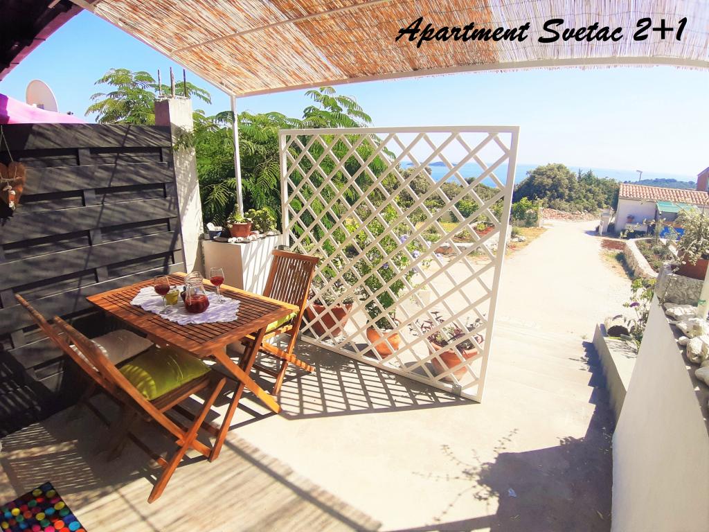 La famille Mijić propose un hébergement dans trois appartements portant le nom des îles voisines. Gap - 2 personnes - surface 22 m2 L'appartement dispose d'une chambre, salon, salle à manger, cuisine, TV, climatisation et salle de bain. Les clients de l'appartement ont une terrasse au rez-de-chaussée, des toilettes et une douche extérieure d'été. Svilan - 2 2 personnes - surface 36 m2 L'appartement comprend une chambre, un salon avec un canapé-lit confortable, une salle à manger, une cuisine, une télévision, la climatisation et une salle de bains. L'appartement dispose d'une terrasse couverte avec une vue magnifique sur la nature et la mer avec un bain à remous, un coin salon et une chaise longue. Saint - 2 1 personne - superficie 30 m2 L'appartement comprend une chambre, un salon avec un canapé-lit confortable, une salle à manger, une cuisine, une télévision, la climatisation et une salle de bains. L'appartement dispose d'une terrasse couverte avec une belle vue sur le quartier, la nature et la mer avec un coin salon. Les appartements ont la possibilité d'utiliser gratuitement Internet. Place de parking sur la propriété à côté de l'appartement. La distance de la mer et de la plage est de 300 mètres.