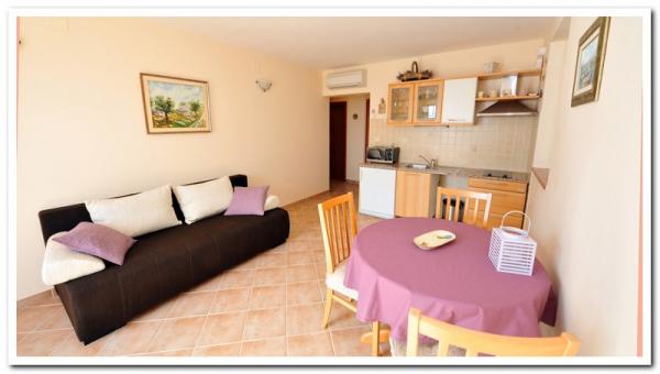 Les appartements sont situés dans un nouveau bâtiment luxueux et sont bien équipées. Ils sont situés à côté de la mer. Appartement 1/4 +1 avec terrasse de 10 m2, est situé au rez de chaussée, appartement 1/4 +1 avec terrasse de 11 m2 situé au premier étage, au même étage il ya deux appartements moitié +1 avec terrasse de 13m2 et 9 m2., appartement et 1/2 +2, qui est situé au deuxième étage avec une terrasse de 10 m2. L'établissement est situé à 15 minutes à pied du centre-ville.