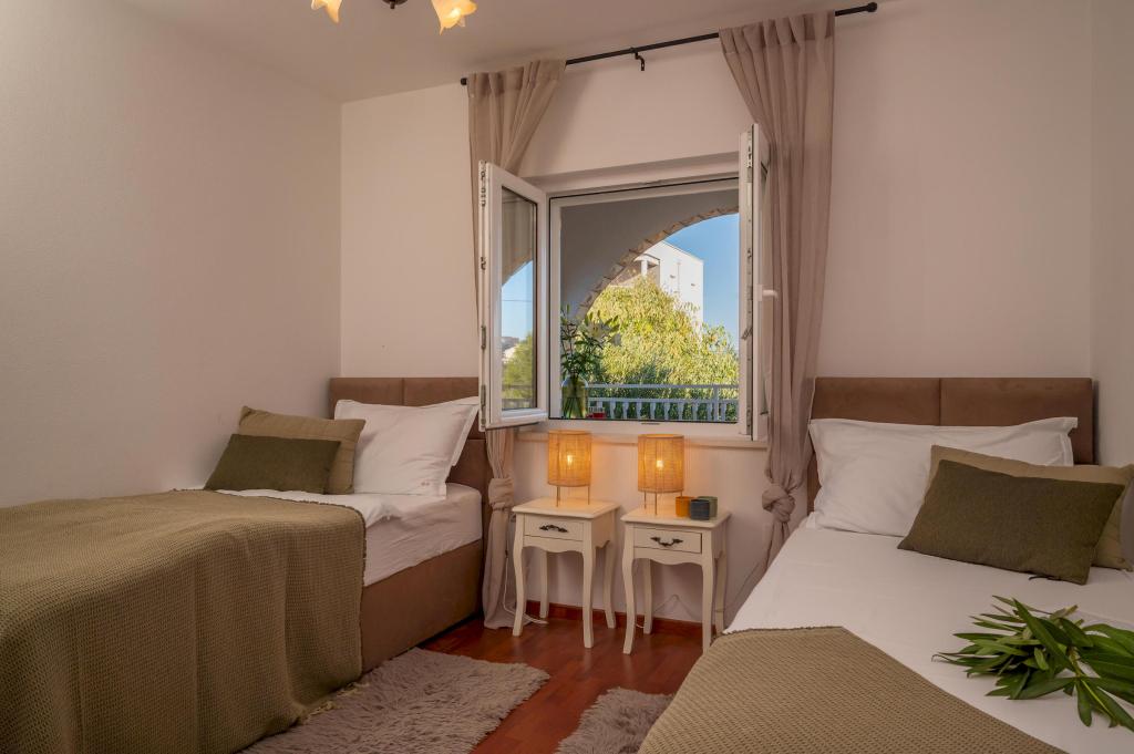 Taxe de sejour est inclus dans le prix. Document de confirmation de réservation lors de la réservationL'appartement est plus beau en réalité que sur les photos, surtout la chambre rénovée. Équipement de cuisine très bon. À seulement 2 minutes de la plage et à 30 minutes à pied du centre. Le plus important est que le quartier soit calme, je le recommande donc aux personnes qui veulent se détendre et en même temps visiter Trogir ou Split. Salutations. Jarek