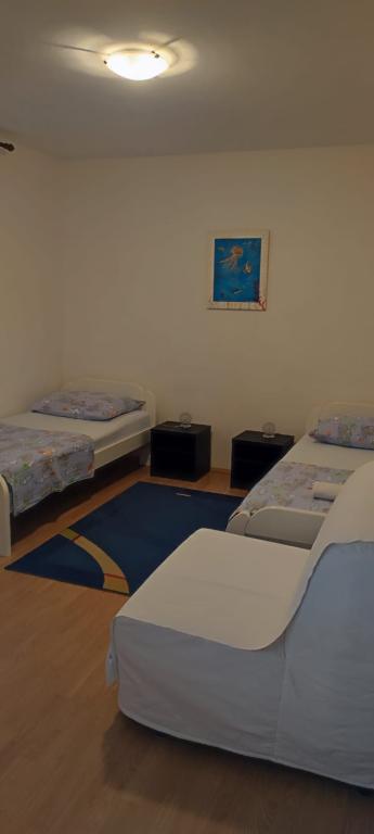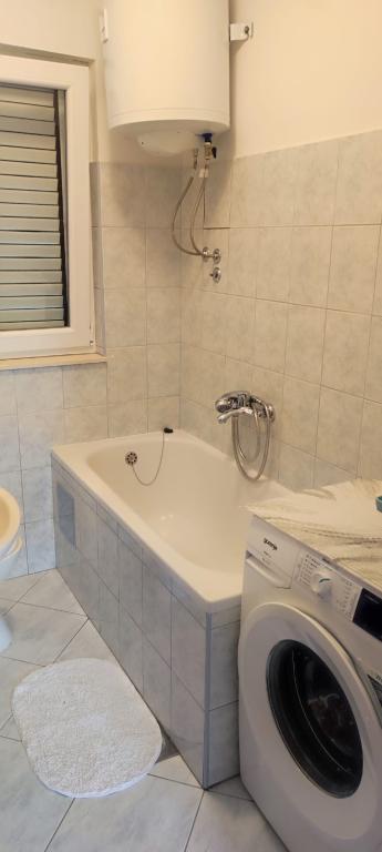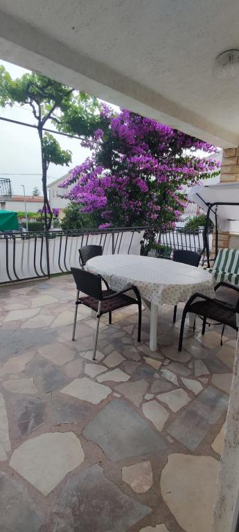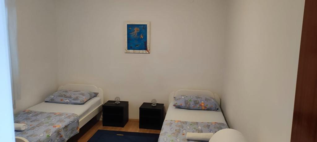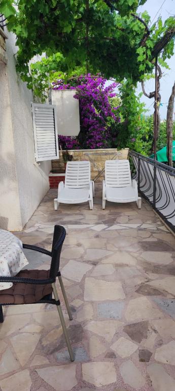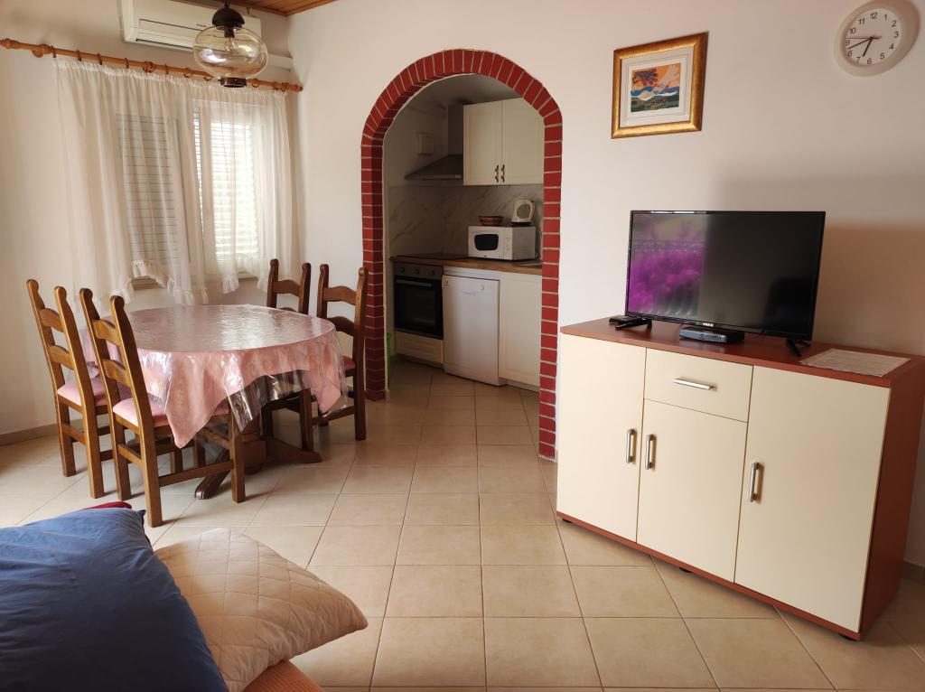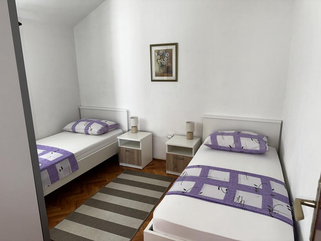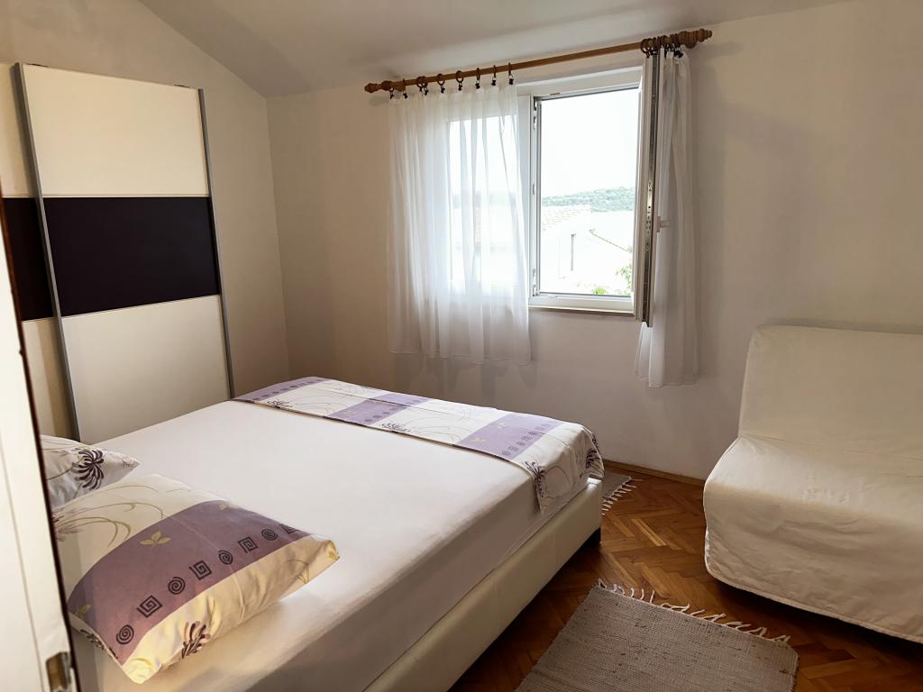 L'appartement est situé dans une maison de trois appartements à proximité immédiate de la mer dans un environnement calme de maisons familiales. Dans la cour de la maison, il y a une place de parking sécurisée pour les invités, et les appartements sont entourés d'un jardin planté de plantes méditerranéennes. Les deux appartements ont deux chambres, une salle de bain, un salon avec cuisine et de grands balcons. L'appartement au rez-de-chaussée dispose d'un balcon d'env. 30 m2, et l'appartement au premier étage est de 15 m2 avec vue sur les îles voisines. La cuisine est équipée de tout l'équipement nécessaire : réfrigérateur, four, cuisinière, micro-onde, chauffe-eau et tous les autres appareils de cuisine. Vous pourrez également utiliser le barbecue dans la cour de la maison. Internet Wi-Fi est disponible dans les appartements. Les appartements sont équipés de la climatisation.