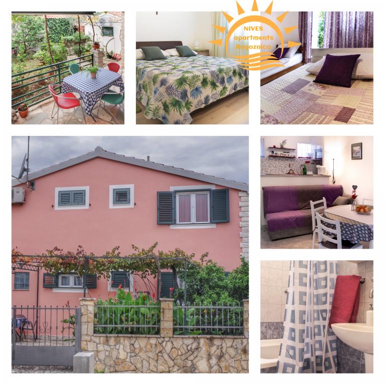 Nous avons passé les 10 derniers jours de juin 2021 dans l'appartement Nives, c'est un grand et confortable appartement pour 5 personnes avec deux chambres, salle de bain, salon et cuisine. De plus, une très grande terrasse confortable ombragée par des plantes poussant dans un joli jardin. Dans le jardin il y a un barbecue avec une cuisine extérieure couverte et une table à manger. L'appartement est entièrement équipé, même avec un fer à repasser et un mixeur à disposition des clients. Des propriétaires enthousiastes et hospitaliers nous ont accueillis avec du rakija et de la bière froide. A quelques minutes à pied de la plage, ainsi que de la ville. Nous recommandons!