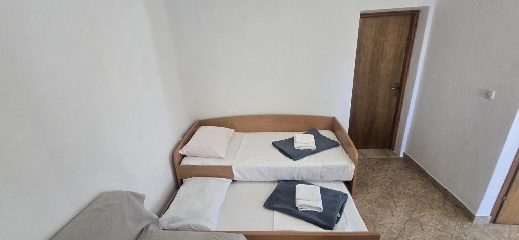 Taxe de sejour est inclus dans le prix.Nous nous sommes reposés cet été avec trois enfants et avons été complètement ravis ! Un endroit idéal pour des vacances en famille : calme, paisible et sûr, loin des routes fréquentées, permettant aux enfants de se promener sans souci. La plage à proximité est propre, bien entretenue et idéale pour les enfants. Les appartements sont très confortables, propres et chaleureux, et offrent tout le nécessaire pour des vacances réussies. Un grand merci à nos hôtes chaleureux. La vue depuis la terrasse pendant le petit-déjeuner et le dîner est tout simplement incroyable - la mer, le silence et des couchers de soleil incroyables. Nous sommes tellement satisfaits que nous prévoyons déjà de revenir ici l’année prochaine ! Nous le recommandons à tous ceux qui recherchent un endroit pour des vacances tranquilles en famille avec des enfants.