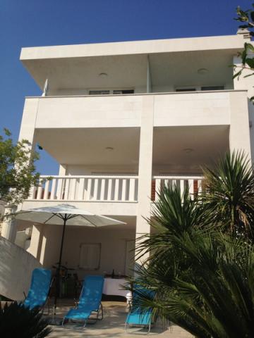 Appartements entièrement modernes et luxueusement classés avec 4 haut dans la partie calme de Zečeva Rogoznica pour ceux qui veulent des vacances paisibles. A proximité se trouve un centre de spa, un restaurant et un bar. Appartements de luxe sont situés à 60 m de la plage qui est en partie gravier et partie pavée de pierre Benkovac caractéristique. Les appartements se composent de 2 chambres avec lits doubles et grands placards, 2 salles de bains avec lave-linge, cuisine entièrement équipée avec lave-vaisselle, micro-ondes A (b) ou four A (a), réfrigérateur et congélateur, espace de vie quotidien une table à manger avec 6 chaises, un canapé-lit adapté pour deux personnes, TV plasma, terrasse avec table et 4 chaises, et offre une vue magnifique sur la mer, les îles et un phare au loin. En face de Villa Marin est un beau grand jardin avec de l'herbe, des palmiers, des oliviers ... et autour de la maison est un jardin de pierre. Nous offrons à nos clients des chaises longues et des parasols sur la plage