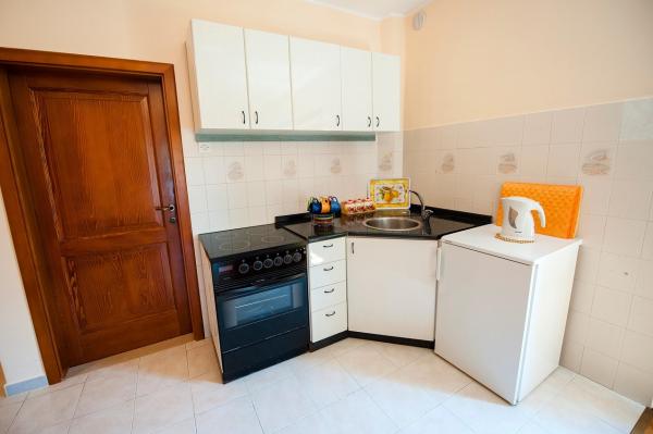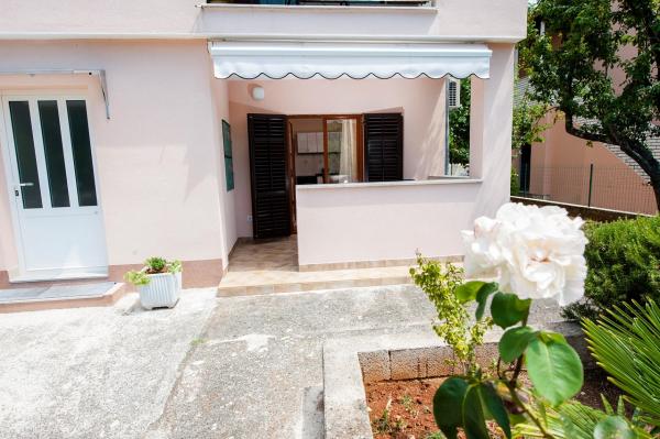 L'appartement est situé dans un quartier très calme, entouré de verdure et à seulement dix minutes à pied de la mer. Il a une chambre, une salle de bain, un salon avec une petite cuisine. Il est situé au rez-de-chaussée, dispose d'une terrasse face à un petit jardin fleuri. Il est idéal pour les couples ou les familles avec un ou deux enfants. De l'autre côté de la rue se trouve un petit parc où les enfants peuvent jouer.