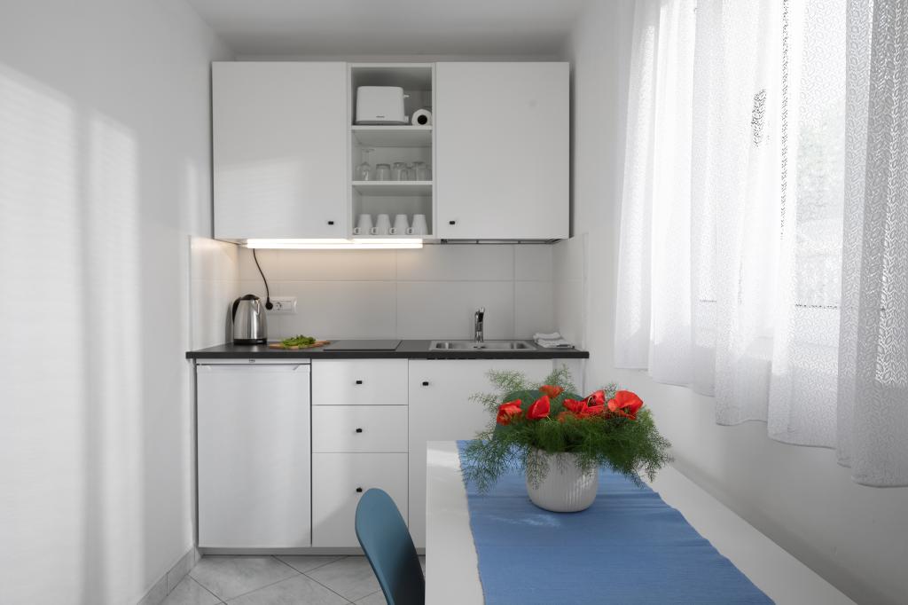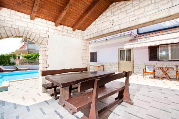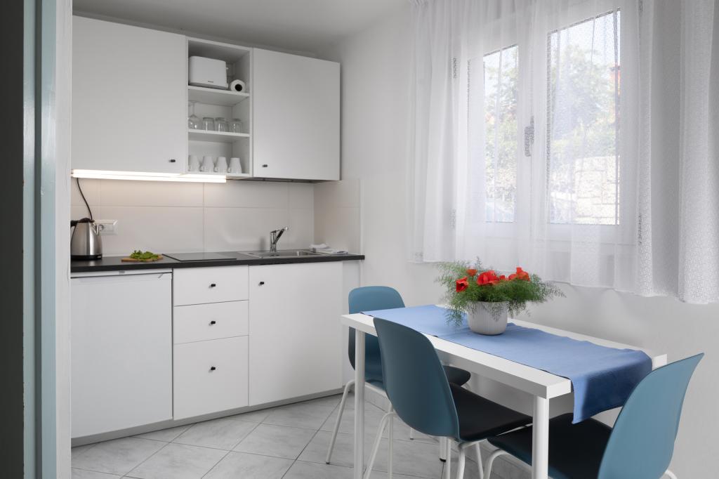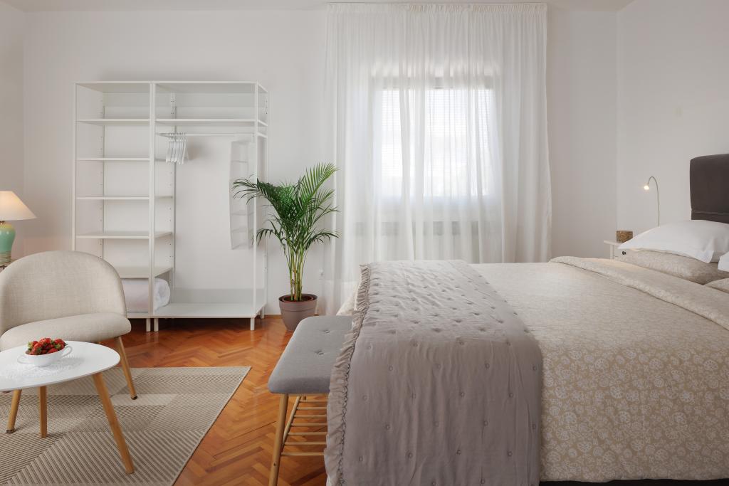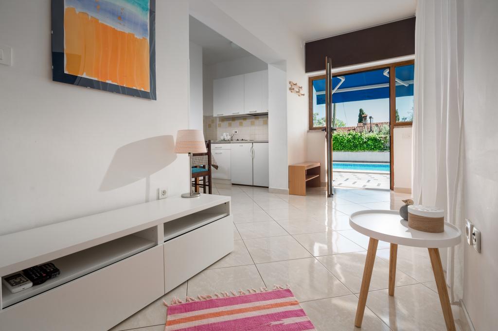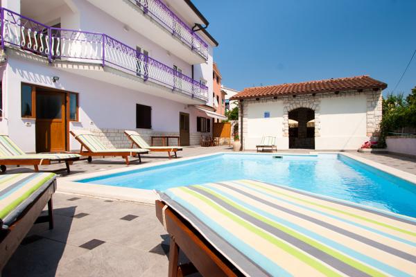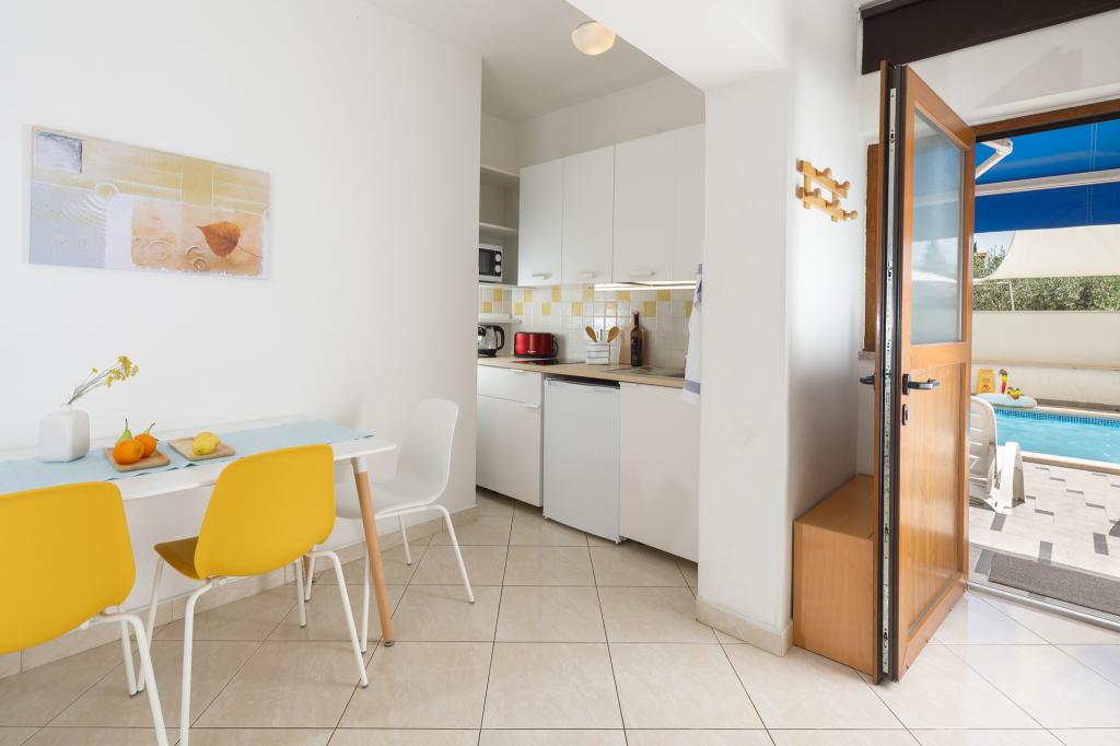 La propriété est située dans un quartier calme de la ville, à proximité il y a des restaurants, une pharmacie et des épiceries (10-100m). Le centre-ville est à 800 m, accessible en 10 minutes à pied environ, et la plage la plus proche est à environ 1000 m, soit 15 minutes à pied. Dans l'arrière-cour de la maison se trouve une piscine et un solarium qui sont à la disposition des hôtes pour leur agréable séjour et leur détente, entourés de verdure et à l'abri des autres maisons.