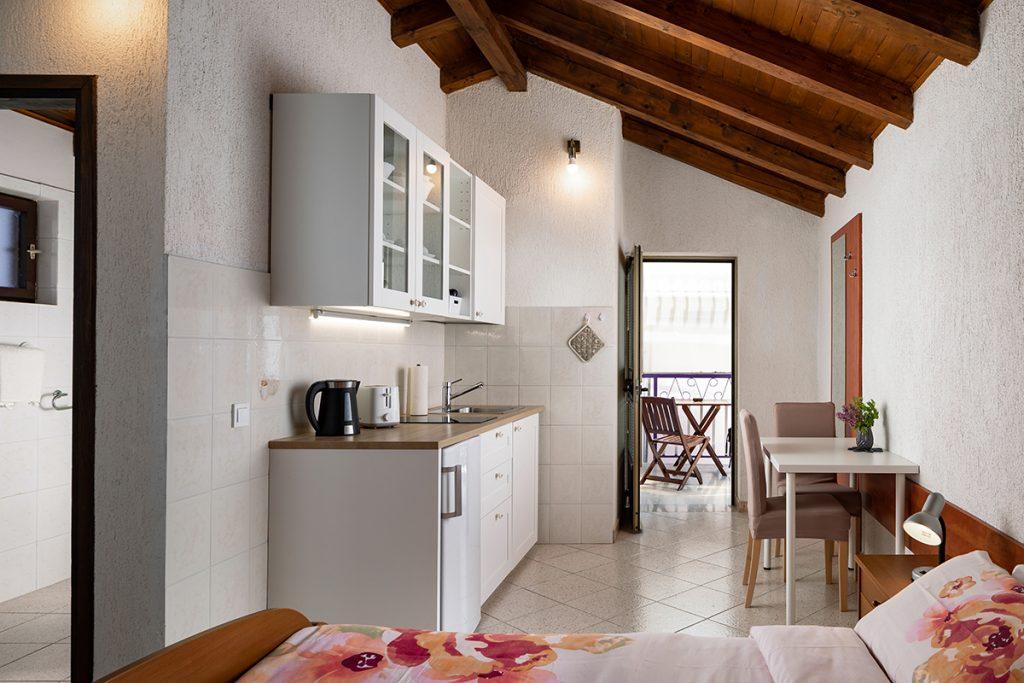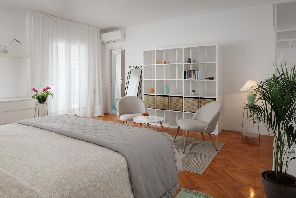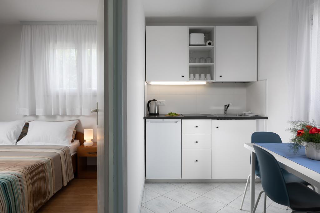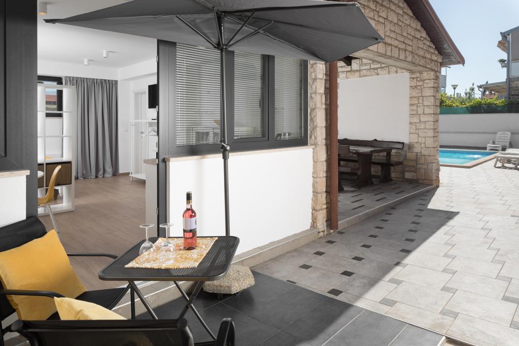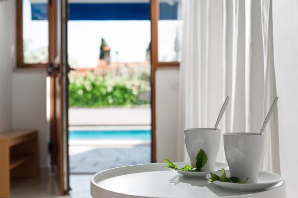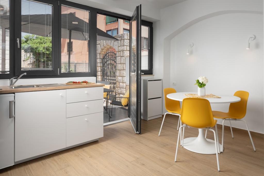 La propriété est située dans un quartier calme de la ville, à proximité il y a des restaurants, une pharmacie et des épiceries (10-100m). Le centre-ville est à 800 m, accessible en 10 minutes à pied environ, et la plage la plus proche est à environ 1000 m, soit 15 minutes à pied. Dans l'arrière-cour de la maison se trouve une piscine et un solarium qui sont à la disposition des hôtes pour leur agréable séjour et leur détente, entourés de verdure et à l'abri des autres maisons.