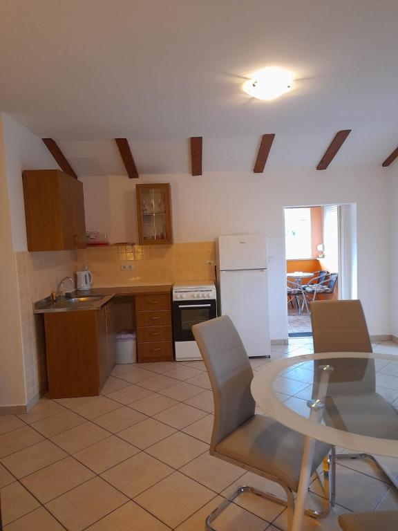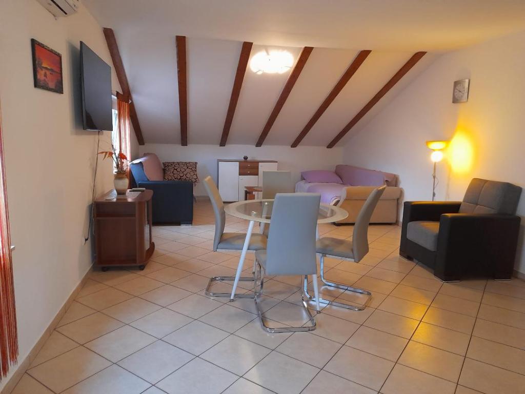 L'appartement est très propre et bien entretenu, une cuisine (kitchenette) équipée de l'équipement nécessaire pour préparer un repas - tout à fait suffisant, un avantage supplémentaire est la terrasse couverte où vous pouvez vous asseoir avec un café ou un verre avec un verre. La région est très calme et vous pourrez vous détendre. Hôte Mme Dragica très gentil et serviable. Pour la plage la plus proche max. 15 min à pied de la ville environ 20 minutes. recommander